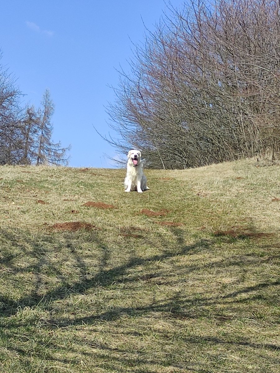 Dnes se konečně oteplilo, mrazy jsou aspoň prozatím pryč, tak jsme hlavně procházkovali, i když pořád jen kolem komína, ale snažila jsem se fotit z jiných úhlů, aby to nevypadalo pořád stejně. Holky šly až k večeru, to už bylo sluníčko skoro za kopcem.