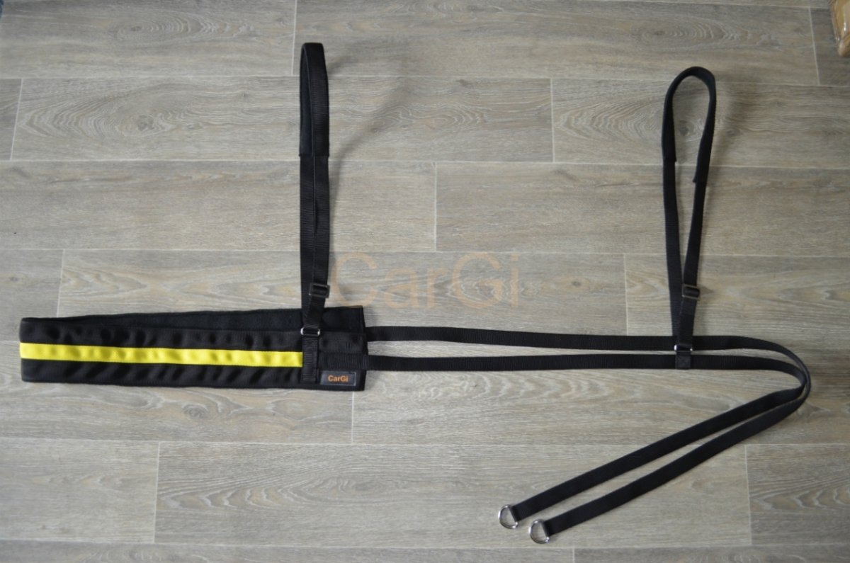 Co se domádo postroje týče, většinou radím lidem přes prsa dát koňovi bavlněný podbřišník, ten je pevný a určený na měkké rozkládání váhy. K přezkám se pak taky dá dobře přivázat nějaká ta lonž nebo jiný provaz/vodítko/kurt, za který kůň táhne. A zajistit podbřišník na prsou řemenem přes krk, aby podbřišník nepadal z koně. Kdo chce být ultra poctivý, může přidat ještě pojistný řemen přes záda koně, že aby si kůň nemohl snadno šlápnout do postraňku… (na obrázcích nějaké šité postroje, tak místo té široké části přes prsa si představte ten podbřišník)