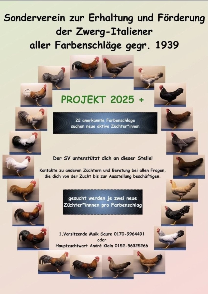 Kdyby někdo uvažoval o chovu čistokrevných zdrobnělých Vlašek, může se připojit k německému projektu 2025+, který pořádá tamní Klub chovatelů zdrobnělých Vlašek. Vybrat si můžete hned ze 22 uznaných barevných rázů a pro získání zvířat/vajec kontaktujte předsedu a autora projektu Mika Saure. Zdrobnělé Vlašky skvěle vypadají, skvěle nesou a nepotřebují tak velké prostory.