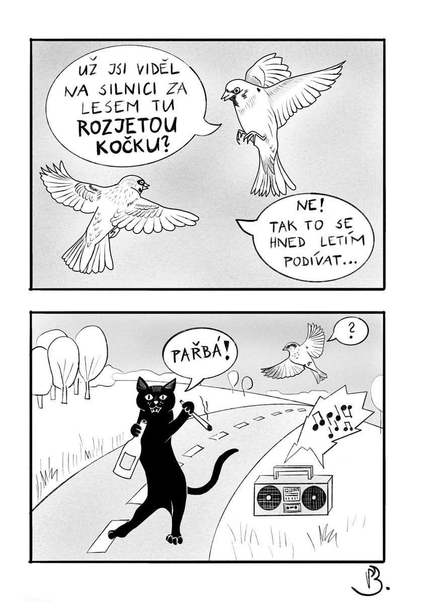 Samečka strakapouda velkého ve špatném stavu jsme sebrali ze země, abychom ho zachránili před kočkami. Vypadalo to, že nám zemře v dlani. Neudržel hlavu, nohy měl silně zasažené vápenkou. Posadili jsme ho na větvičku a frrrr - byl rázem pryč. To nám udělalo radost.