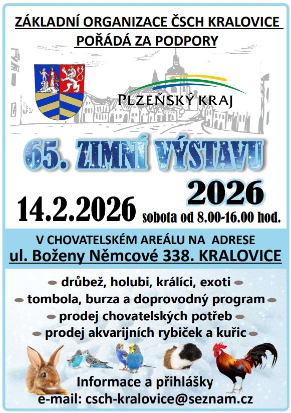 Tradiční výstava v Kralovicích se koná přespřístí sobotu 14.2.