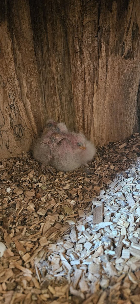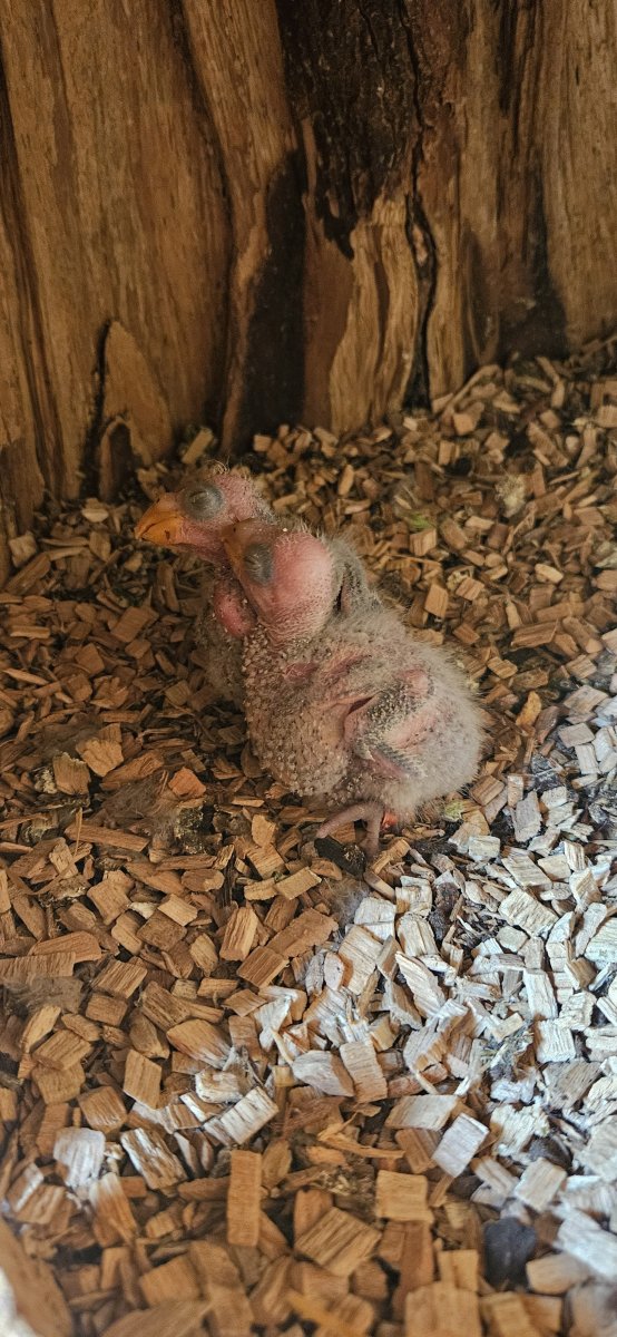 Mladata jsou zhruba tyden stara.Uz se mi stalo ze samice vyvedla mlade sama, ale vzpoměl jsem si ze když jsem choval andule v hejnu tak plonkovni samci lozili do budek a krmili cizi mlaďata tak mě napadlo tam zkusit dát druheho