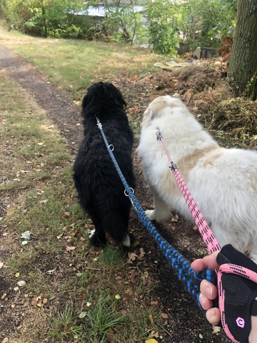 Gina teda normálně řekne “tvl viděla jsi to?”…ale včera vzhledem k tomu, že ušák vystartoval docela blízko od nás a už nebylo denní světlo, tak se teda rozeběhla. Naštěstí, když napne vodítko, tak sama povolí, ale teda do klidu se nedokázala hodit, tak udělala kolečko kolem mě…a teda ještě jedno….což vyžaduje už trochu zručnosti, když mám na vodítku ještě jednoho psa, abychom se do vodítek nezamotali…než se mi povedlo Ginu přitáhnout a uklidnit. …jakože za tím zajíčkem opravdu nepoběžíme a ne Gino, ani ho nebudeme sledovat…my jdeme tudyma…