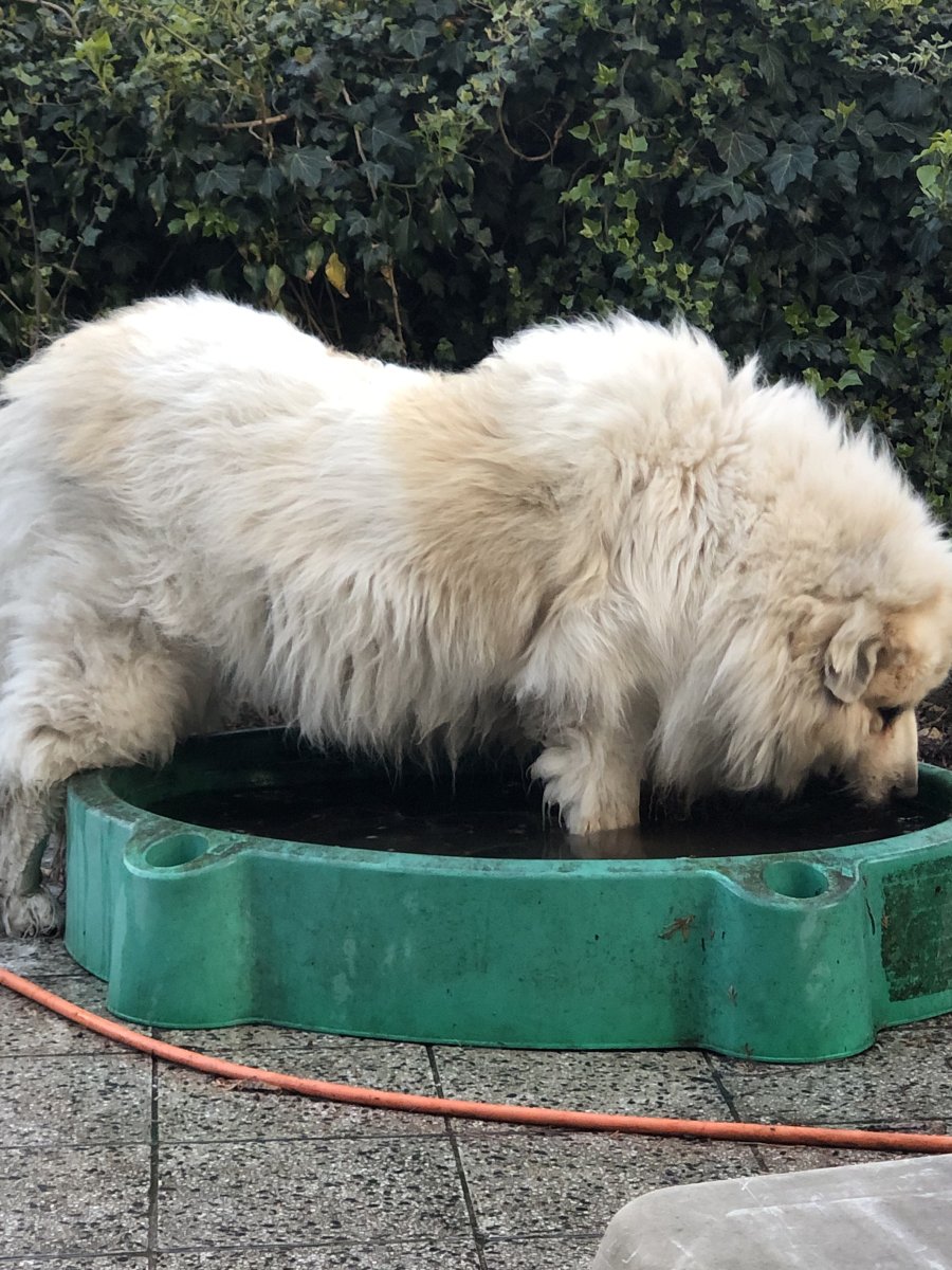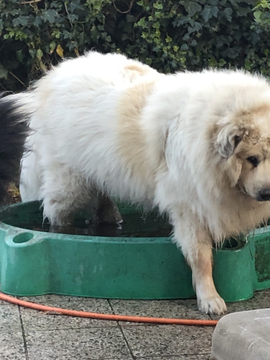 Ji ji, rozčesaná je, dáma a krasavice vesmírná a jsk jsme přišli dom, tak udělala hurá do bazénku s totàl špinavou humus vodou, kterou jsem zapomněla vylít😴