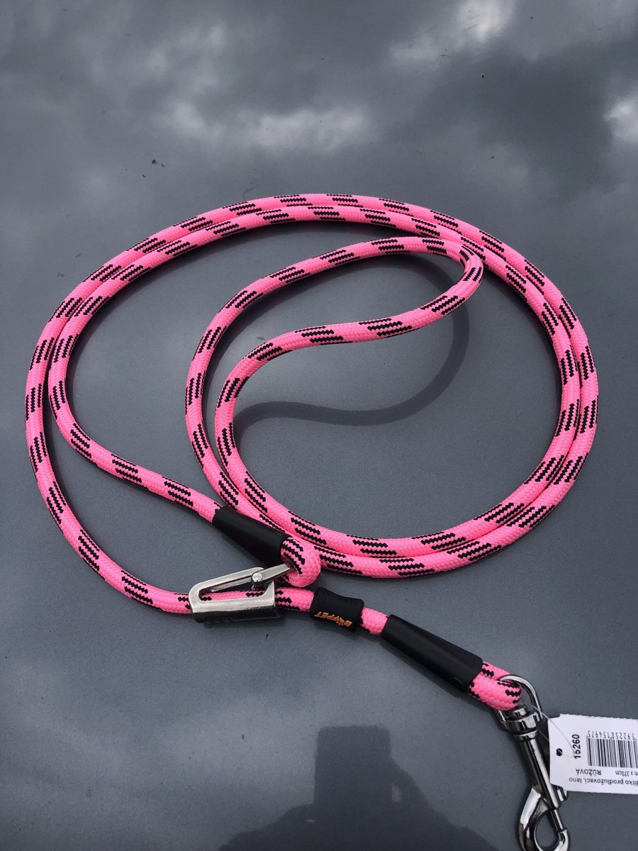 Tak vám jdu takhle dneska do zveráče a zabrouusím k vodítkům, neboť jsem se pitřebovala juknout jestli nemají rozdvojku na vodítko a co nevidím… jako lanové vodítko, to posouvací a růžové, no nebudu kecat už ho mám doma, šňůra je tlustá 10mm.. akorát ta karabina ve mně nevzbuzuje důvěru, tak tu výměník, ale jinak se zatím jeví vodítko super, tak večer hned vyzkouším na prochajdě.
