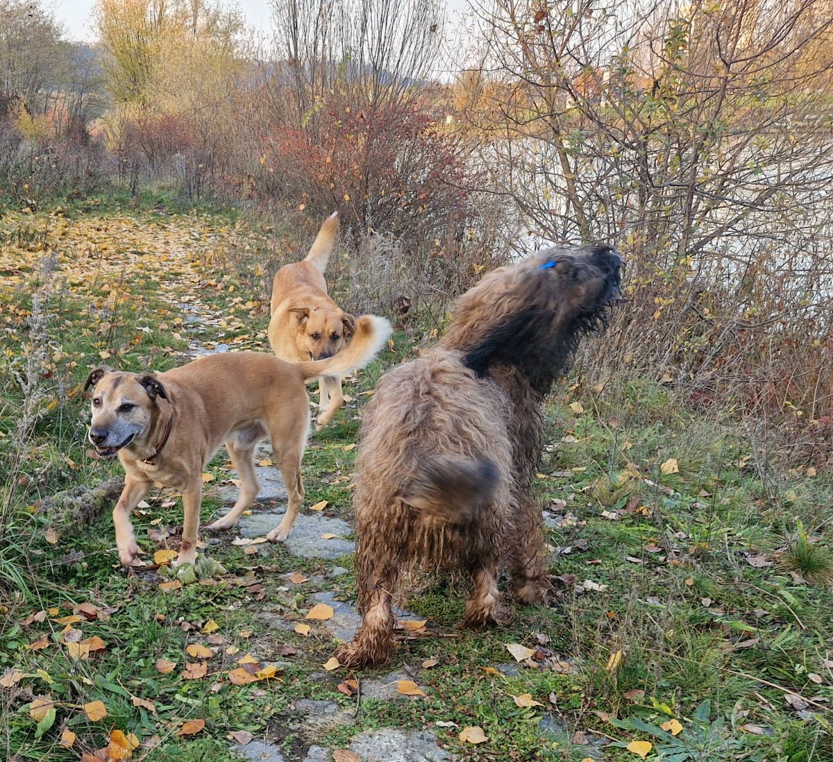 Doron:Ty chlupy jsou při našem životním stylu opravdu problém, on je každý den ve vodě, v bahně, v kožichu bodláky, svízel, šípkový a ostružinový větvičky.., on si tedy většinu vytahá sám, ale všude nedosáhne. Vážně přemýšlím, že ho na jaře ostříhám.