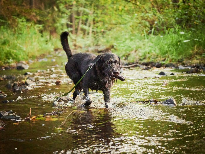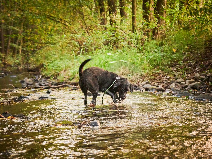 Měla jsem plán nafotit si psa v potoce. Menší zádrhel nastal, když v potoce ukázkově ohluchnul a záhadně zapomněl, že je poslušným a spolupracujícím psem 😀 Ale na několikátý pokus jsme se docela dohodli. Měla bych s ním tohle cvičit častěji, nespokojit se s tím, že ho z potoka nějak dostanu, ale fakt za ním vlézt do vody a cvičit se šňůrou…