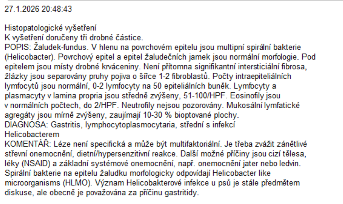 Dnes mi vetka volala (následně poslala zprávu do mailu), že se tam prokázala gastritida a ještě něco, mluvila o IBD (?) já mám ten telefonní hovor bohužel docela zkreslený, proto jsme chtěla i zprávu do mailu.