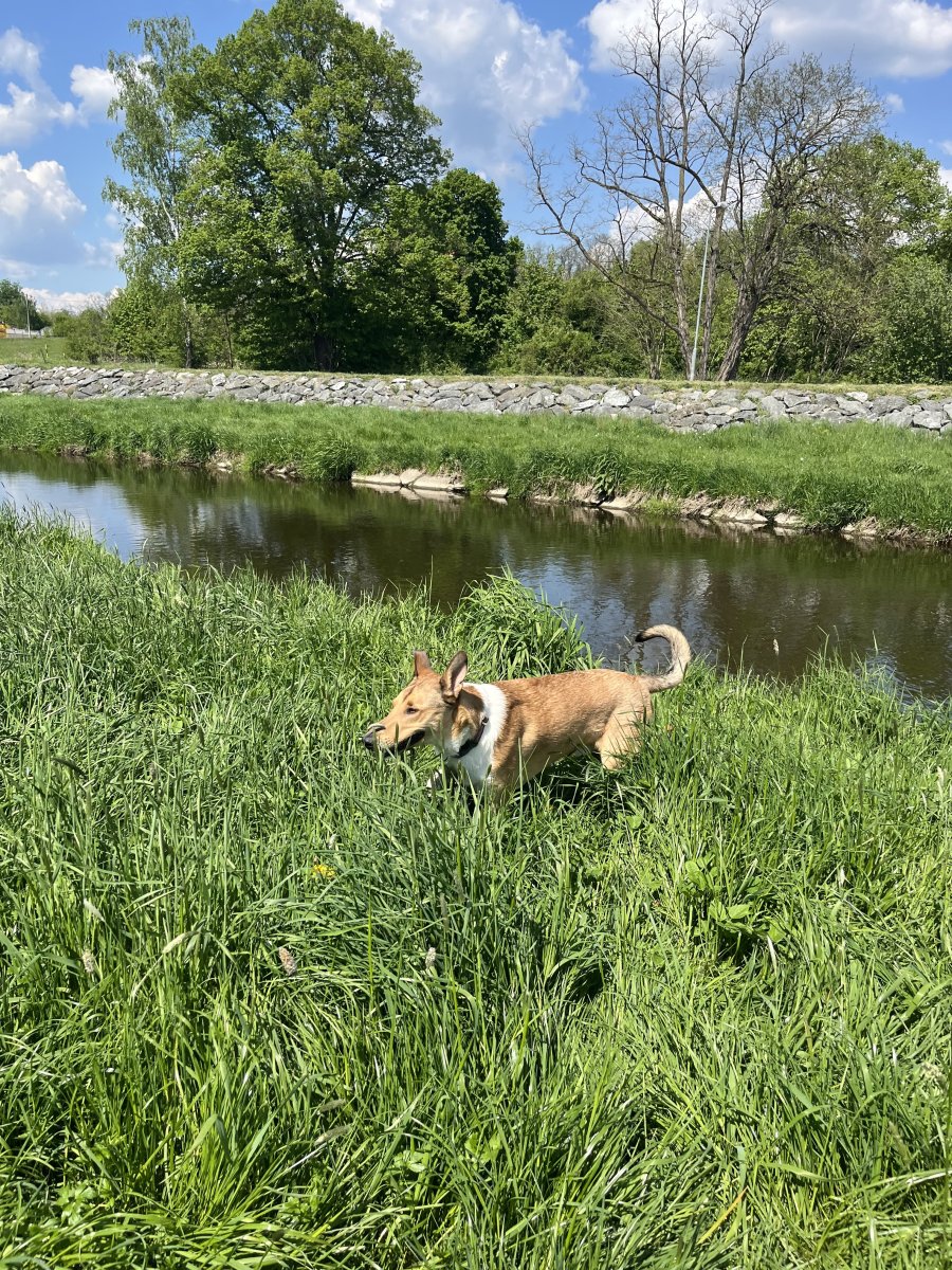 My byli na výletě kolem rybníčků a v lese, další den na návštěvě u rodiny (to ho vždycky zmůže 😂) a včera měl 3hodinky procházku s polobráškou a nějakým menším cvičením. Dnes bude mít odpočinkový den a nic akčního. Ráno se mu nechtělo vstávat do práce a byl trochu protivný. Na chodbě vynadal i vlastnímu odrazu v zrcadle, který vidí každý den 😂…