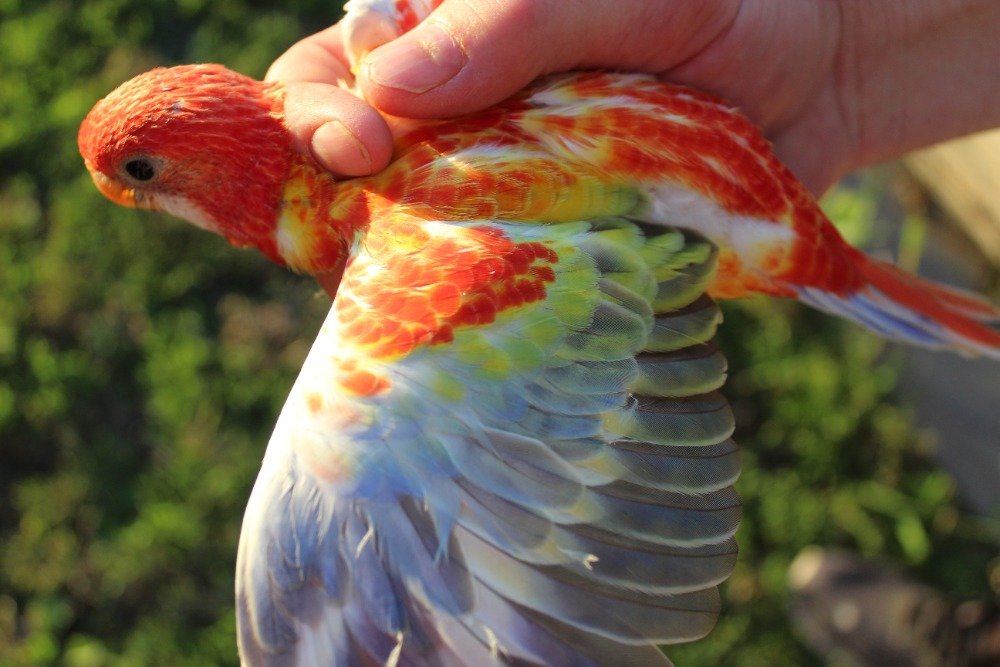 Dnes při kroužkování jsem našel na jednom mladém asi otlak nebo strup. Viz. foto. Myslím, že to vzniká tím, jak mladí na sobě v budce leží. Mám tam jenom dvě a tohle je mladší.