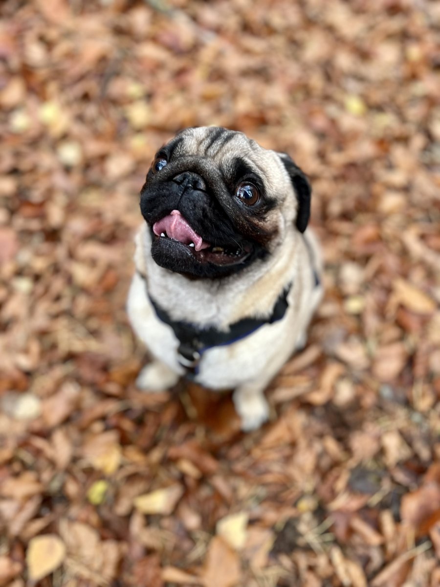 Snažím se ho naučit povel lehni. Za prvý je při pohledu na pamlsky totálně excitovanej (holt mops no), takže musím neustále cvičení prokládat sebeovládacími cviky, a za druhý na něj při cvičení nemůžu sahat, že bych mu jako fyzicky dopomohla do určité pozice - u něj je to kontraproduktivní. Takže zatím jsme ve fázi, kdy jsem mu byla schopna vysvětlit, že po něm chci, aby při braní pamlsku ze země před ním, nechal přilepený zadek k zemi. Už si dokonce jednou (spíš tak omylem) lehnul, ale hned zase vyskočil. Jenže on je tak ohebnej (na mopse), že má klidně zadek na zemi, ale přesto se k pamlsku ohne, aniž by si potřeboval lehnout. A tady jsme se zasekli a já nevím, jak dál. Pokud na něj sáhnu a zeshora ho trochu zatlačím rukou, tak vyskočí a uhýbá. Jak mu teda ještě jinak dopomoct do lehu?