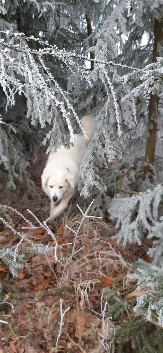 Tak u nás stále mlha,už ani nevím kolikátý den.Jen mezi stromy se drží výš.Ale jinak krásné bílé svátky,ikdyž bez sněhu.Alan se vylítal a na poslední fotce je už na svém místě na odpočívadle,kde byl rychleji než jsem stačila zavřít dveře.