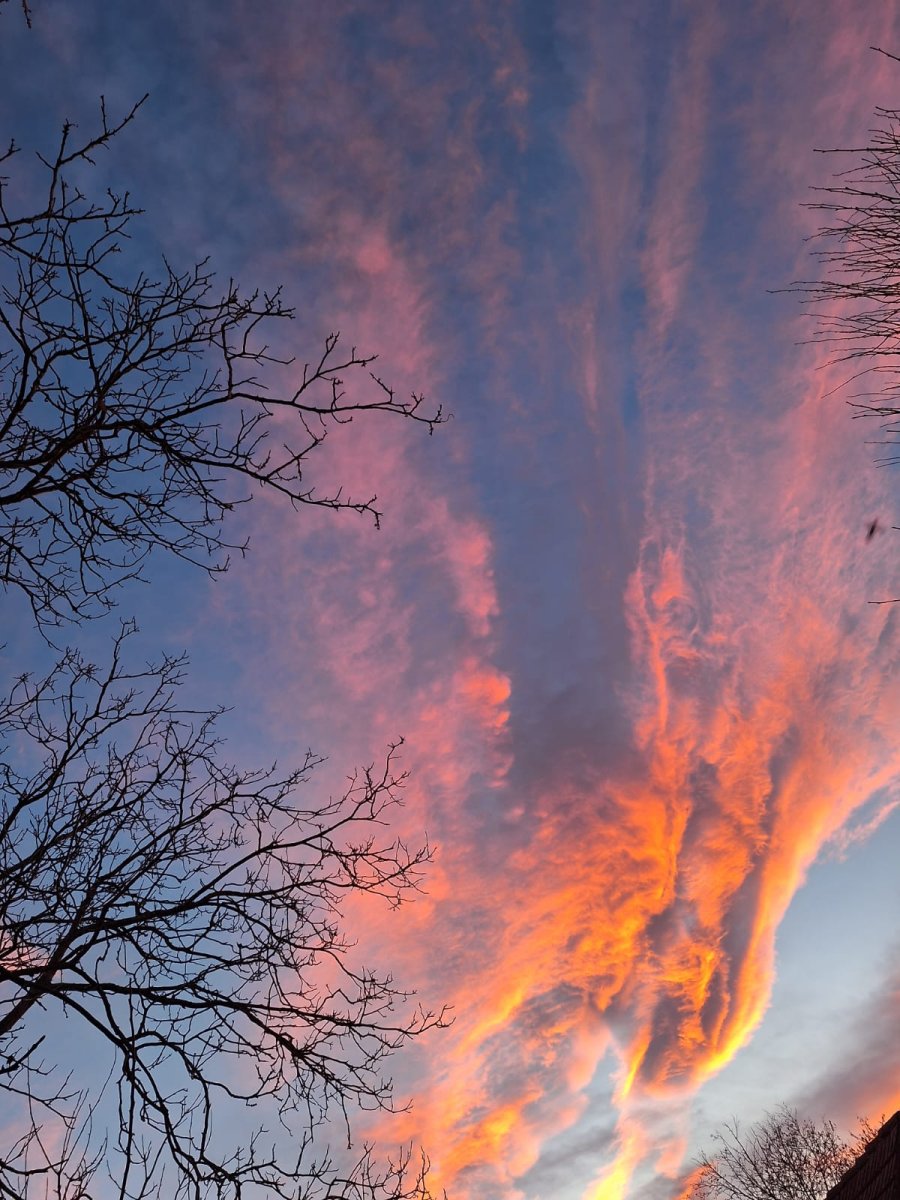 Dnes byl krásný západ slunce,mám několik fotek,ale tahle,když jsem si je prohlédla, tak tam vidím letícího ptáka.Co tam vidíte vy?
