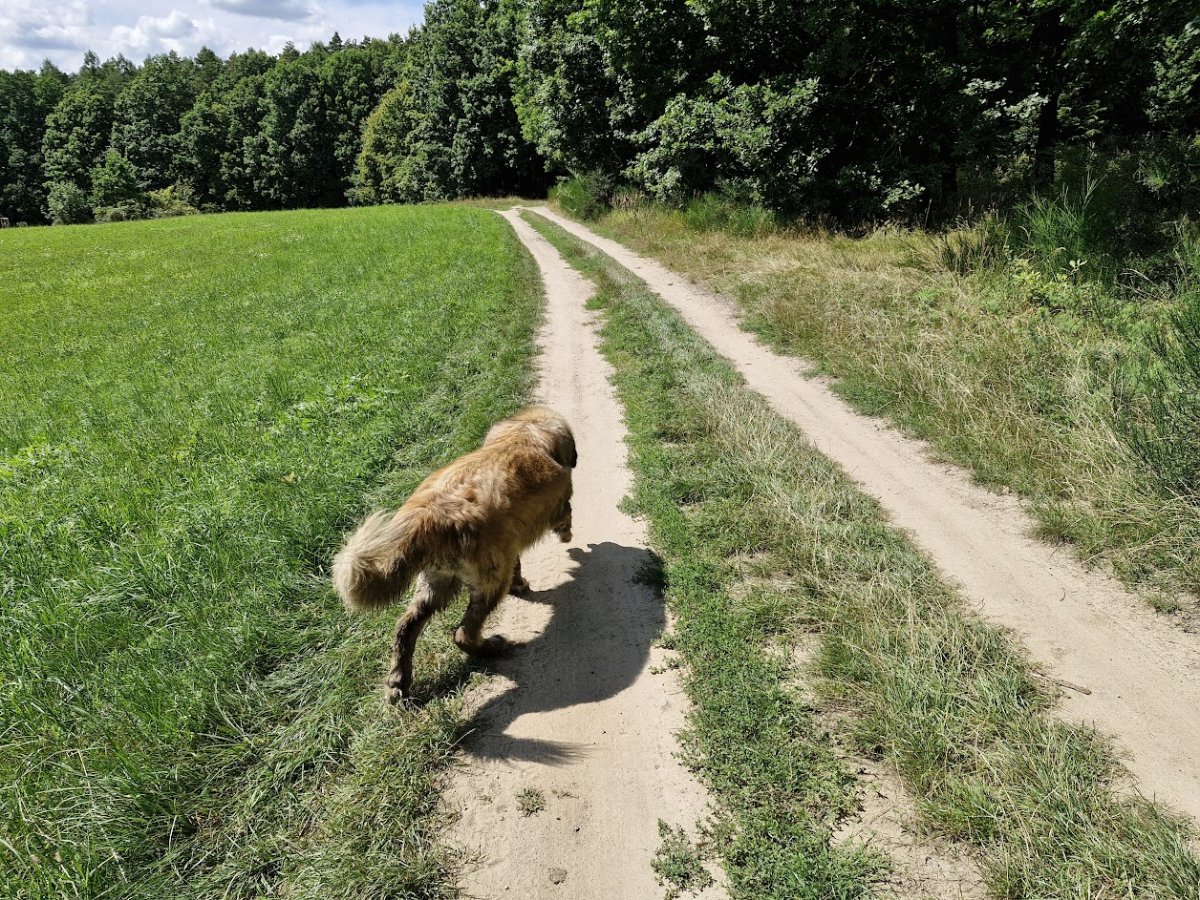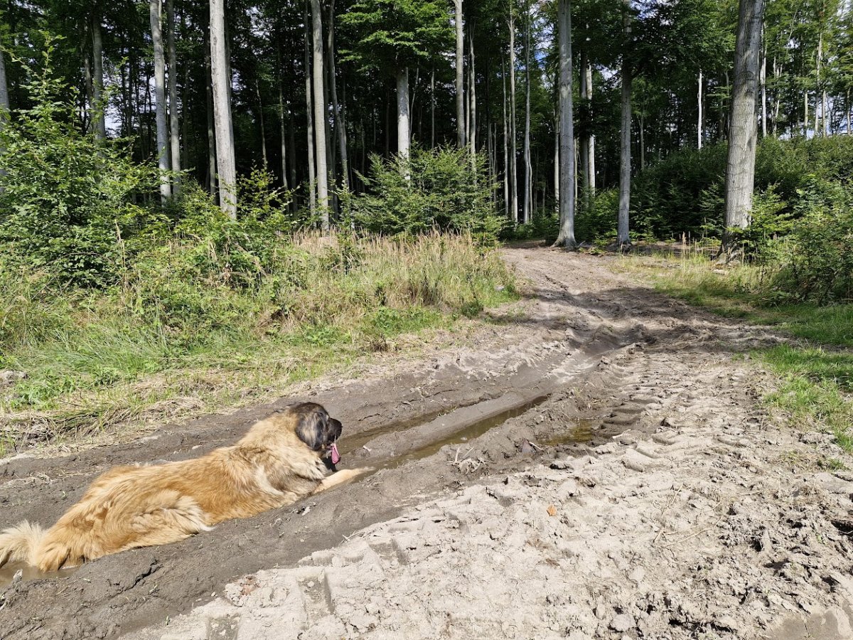 to není bahno, ale louže, to znamená voda a to je občerstvovací stanice. Nora je jak vodník, nejlíp jí to šlape, když má mokrý šos.