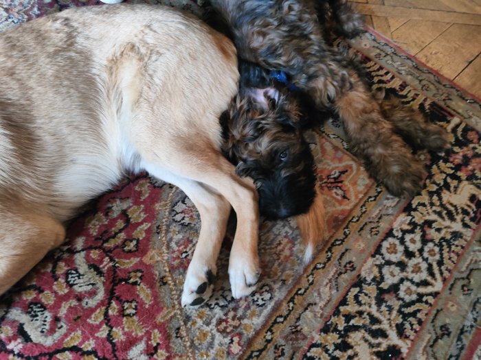 Musím se vám po delší době pochlubit, jak Fram roste. Na fotce s kamarádkou, která se s tím nemůže smířit 🤣a pořád ho chce chovat 😅.