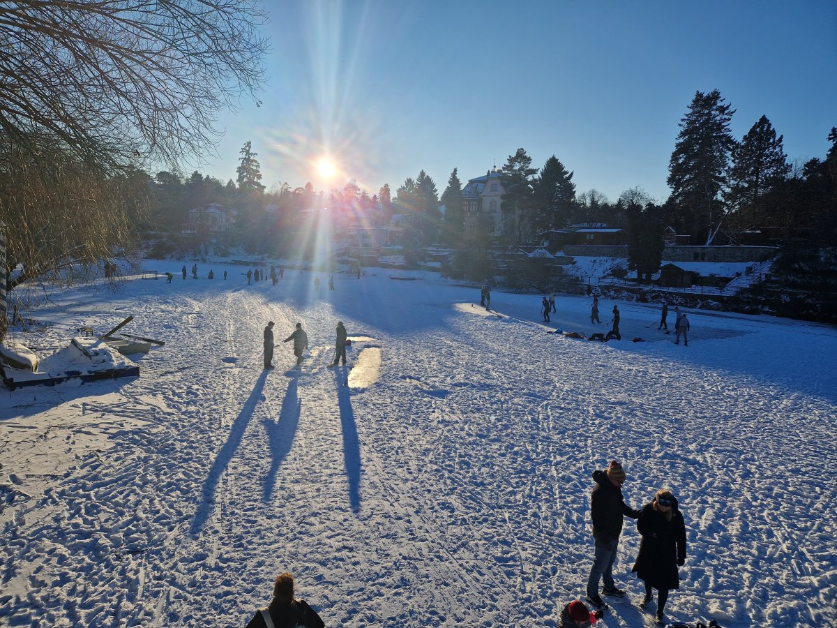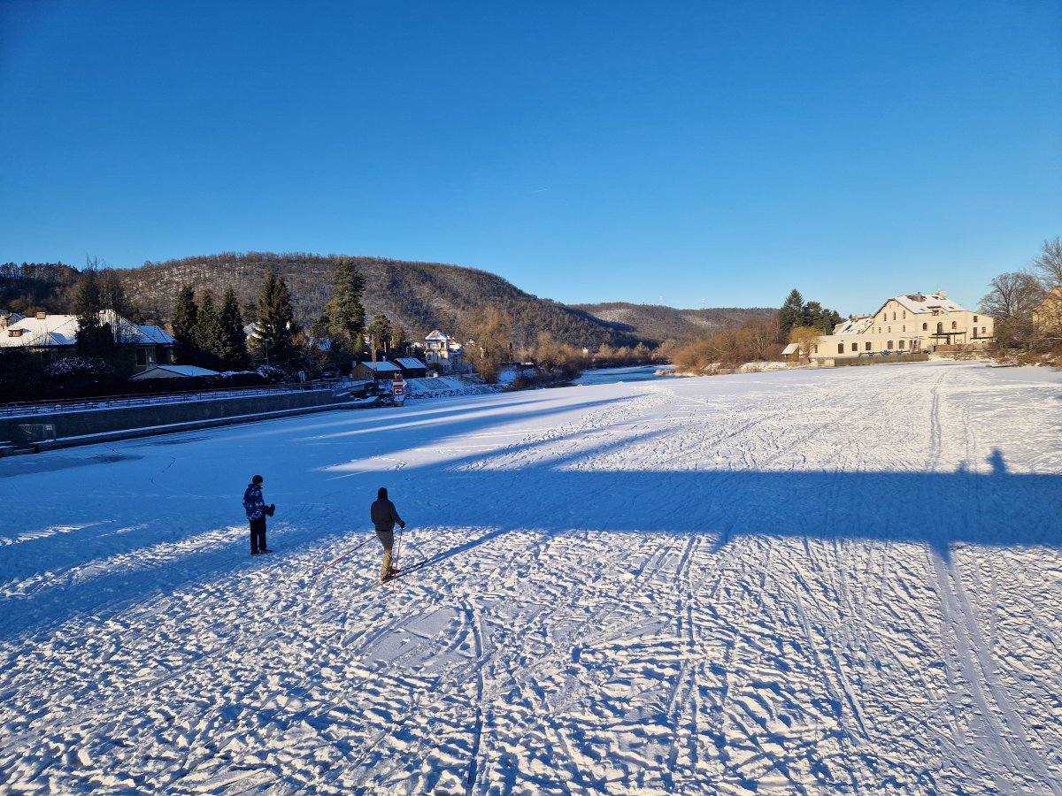 Na posledních fotkách zamrzlá Berounka u černosičkého jezu, je to krása.