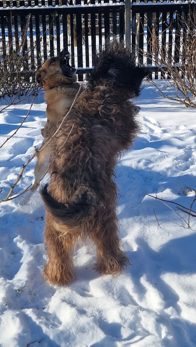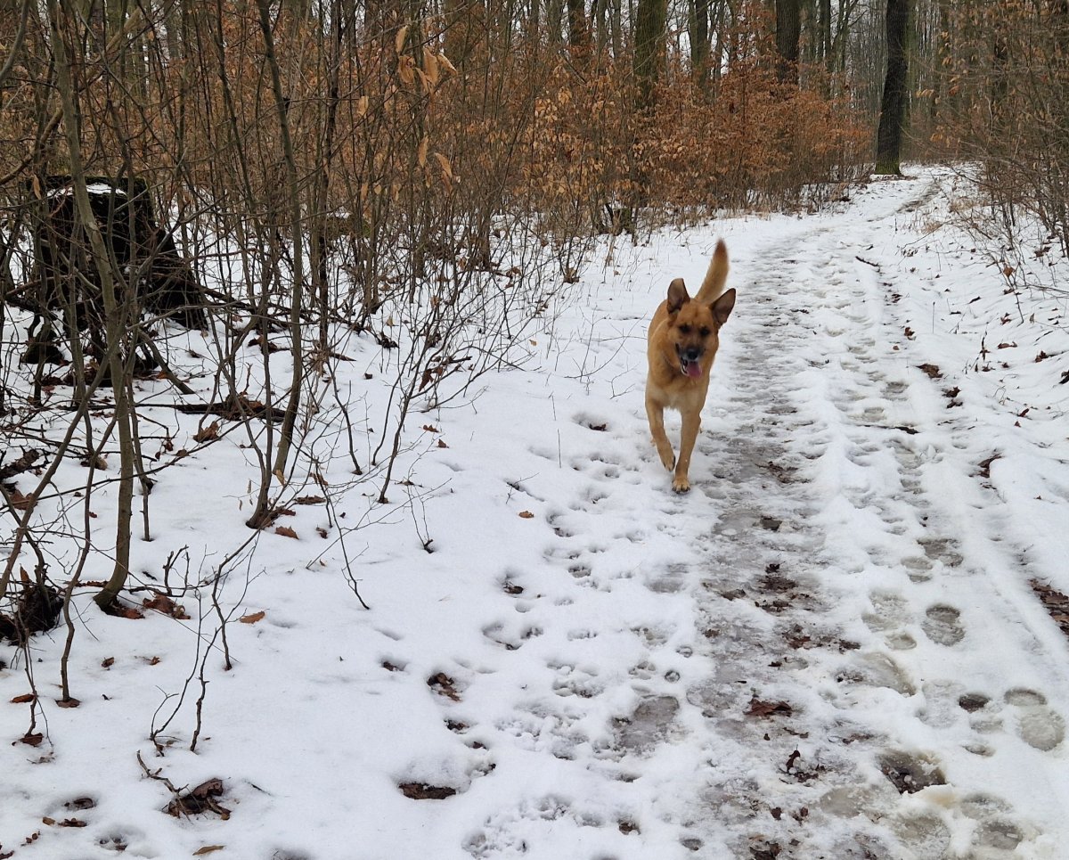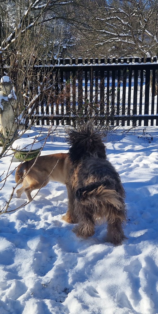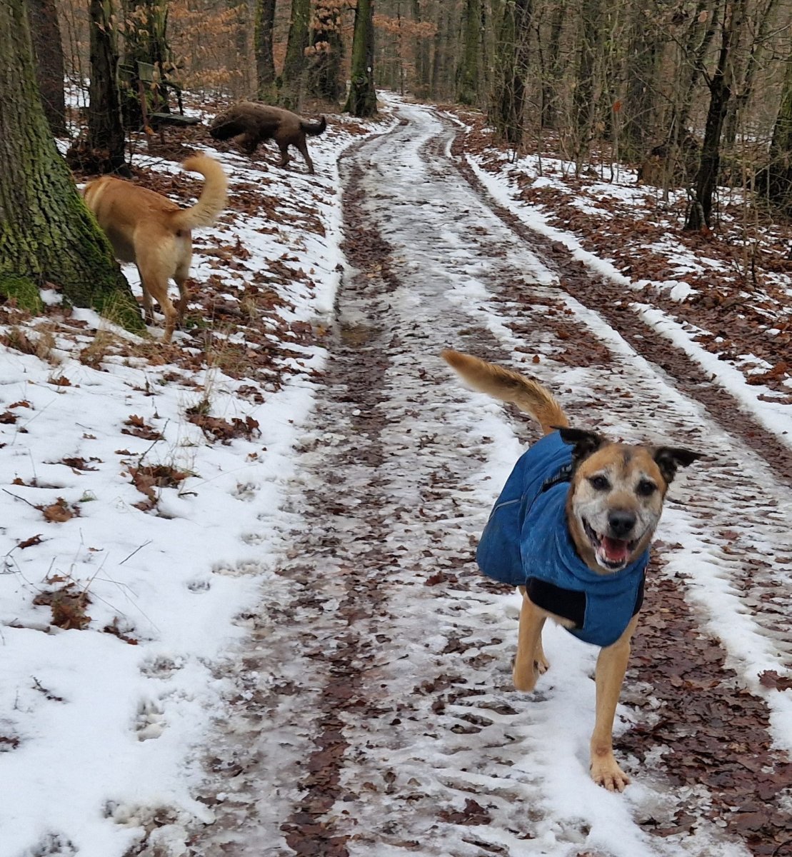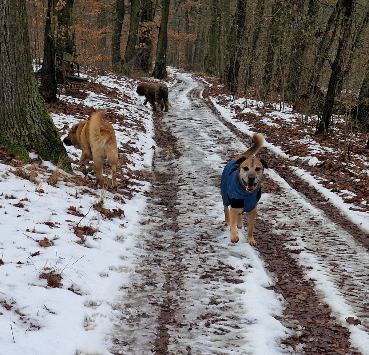 My dnes zatím nikam nejdeme, strašně to klouže, bojím se jet autem na cvičák a taky se bojím aby se při obranách Fram nezrakvil. Nebo figurant..
