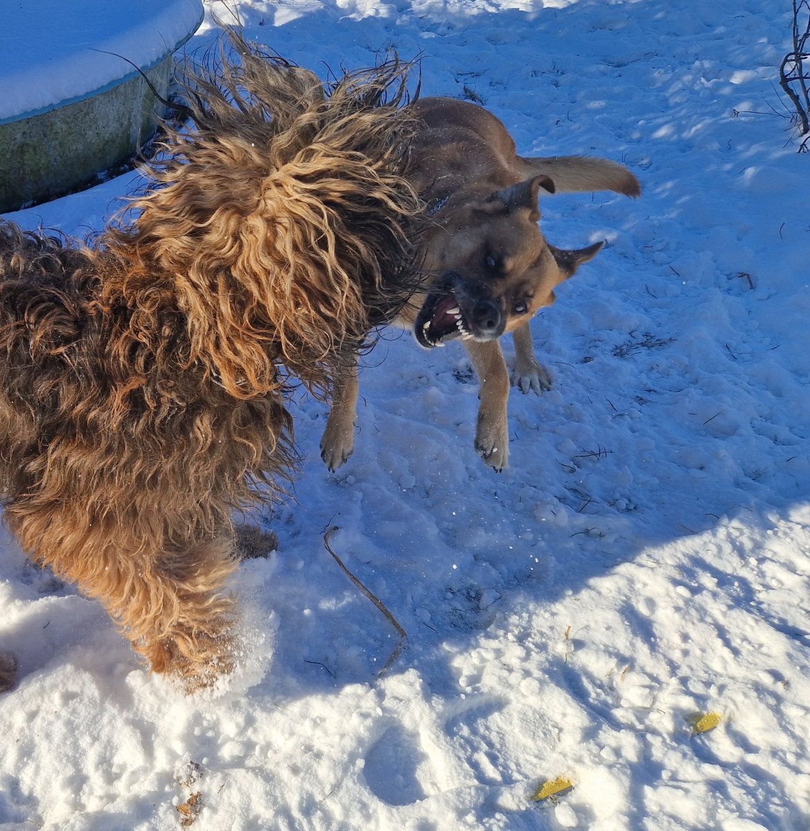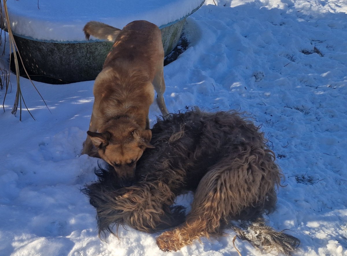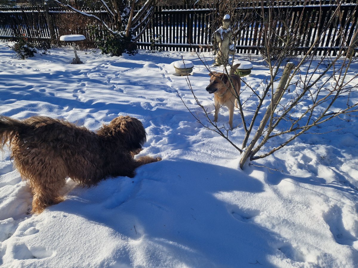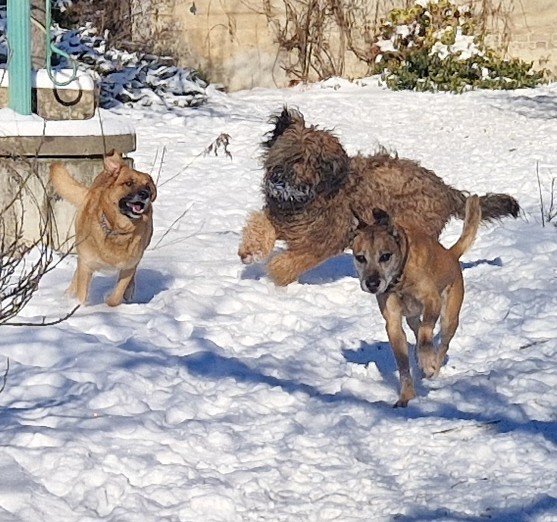 Psíkry sníh rozveselil a začali si spolu hrát , už to moc nedělali, že prej nejsou děti. Dneska se honili, tahali o provaz a hlavní byly souboje.