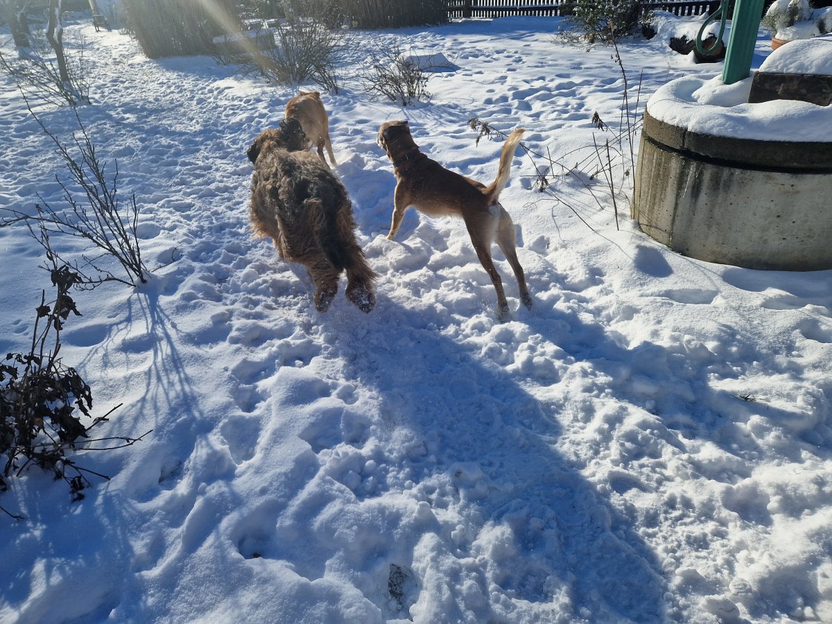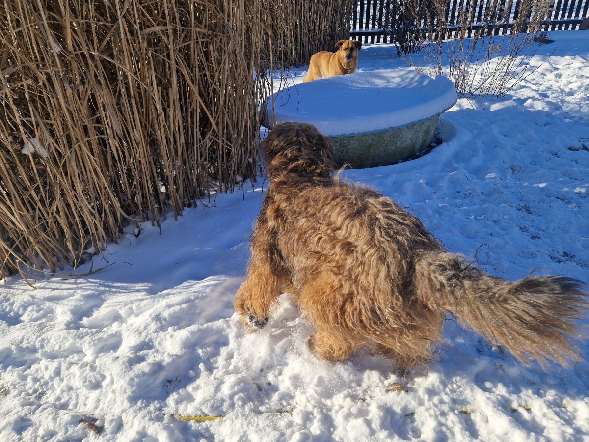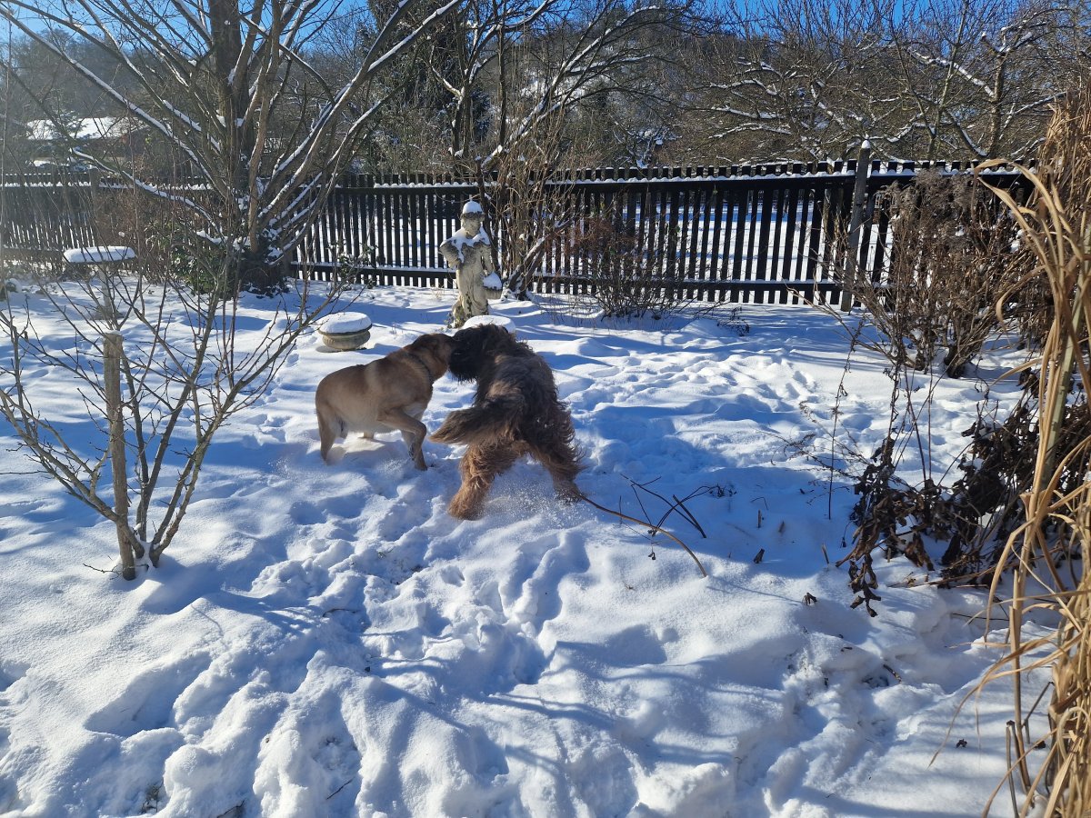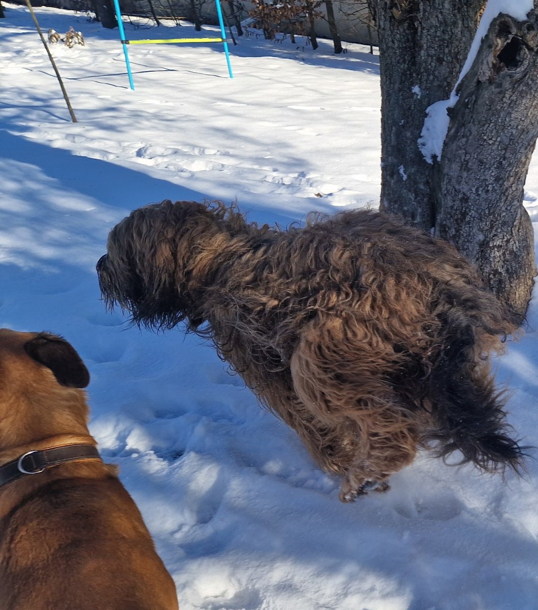 Psíkry sníh rozveselil a začali si spolu hrát , už to moc nedělali, že prej nejsou děti. Dneska se honili, tahali o provaz a hlavní byly souboje.