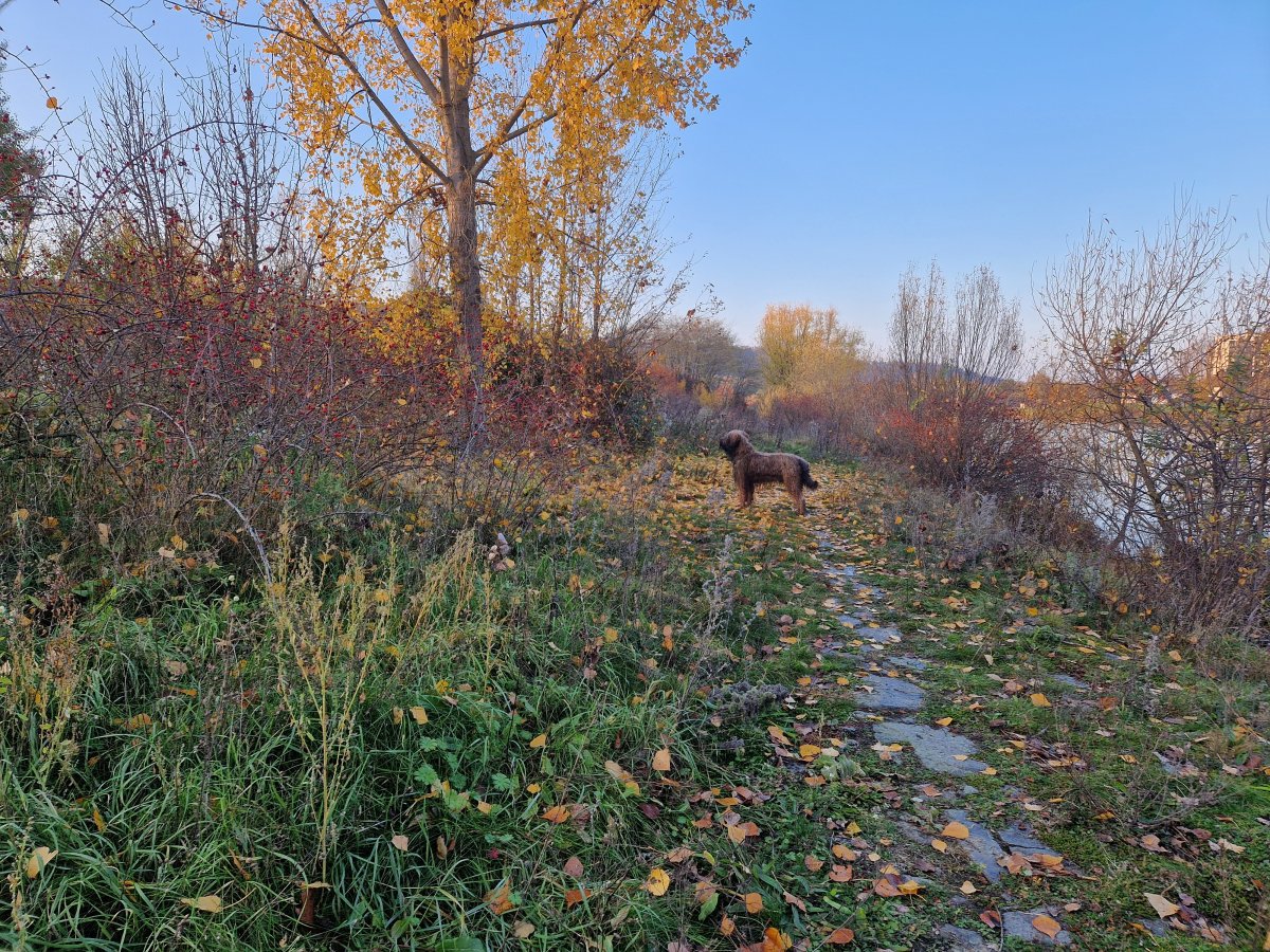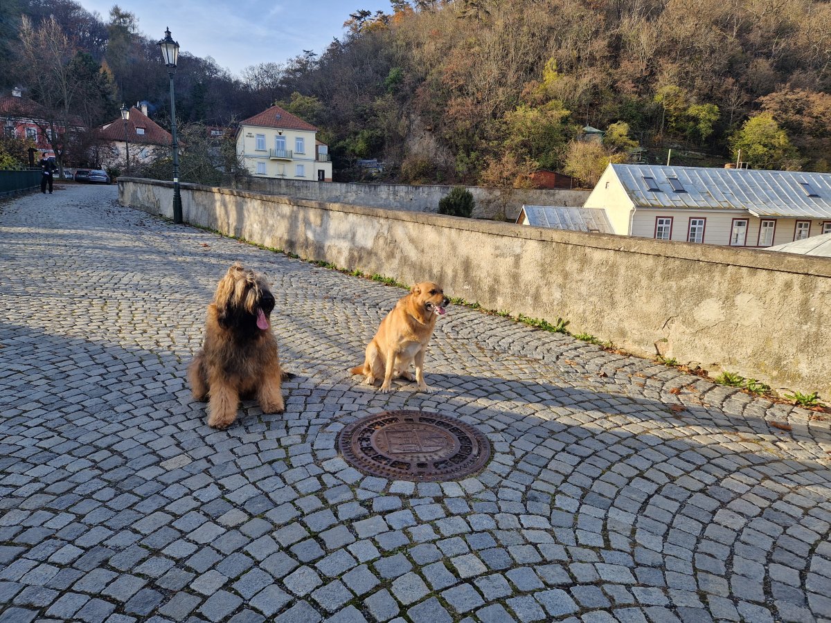 U nás dnes krásně. Na velkou procházku šli jen mladší kluci, Gučka byl jen po rovině a pak to zalomil na gauč.
