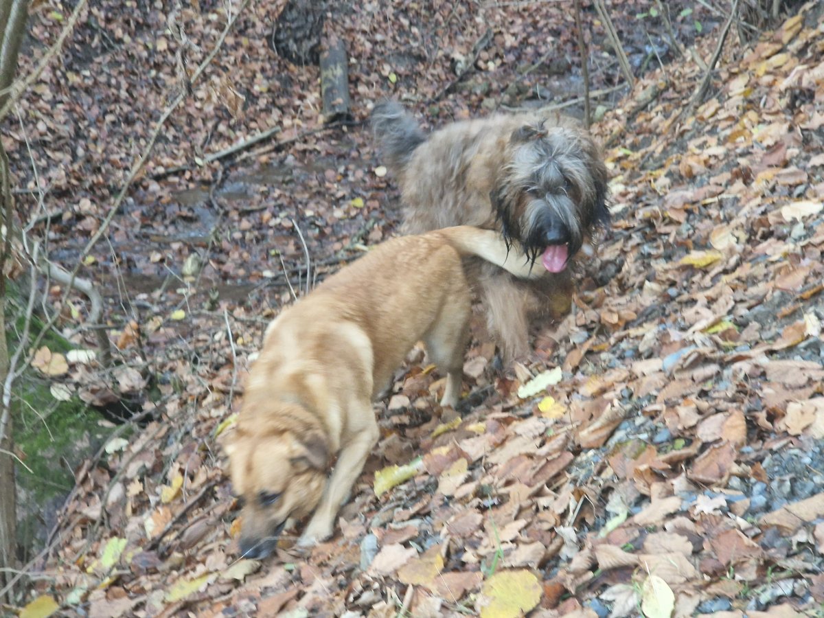Moji mladí sousedé si půjčili na výlet Gučku a Dorona, oni vlastního psa mít nemůzou, tak si kluky občas půjčují, mají se moc rádi. Ti zase v lese potkali dvě mainské mývalí kočky venčené navolno, kluci to prý zvládli bez ztráty kytičky.