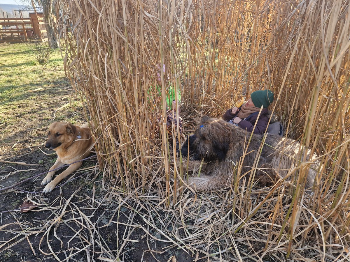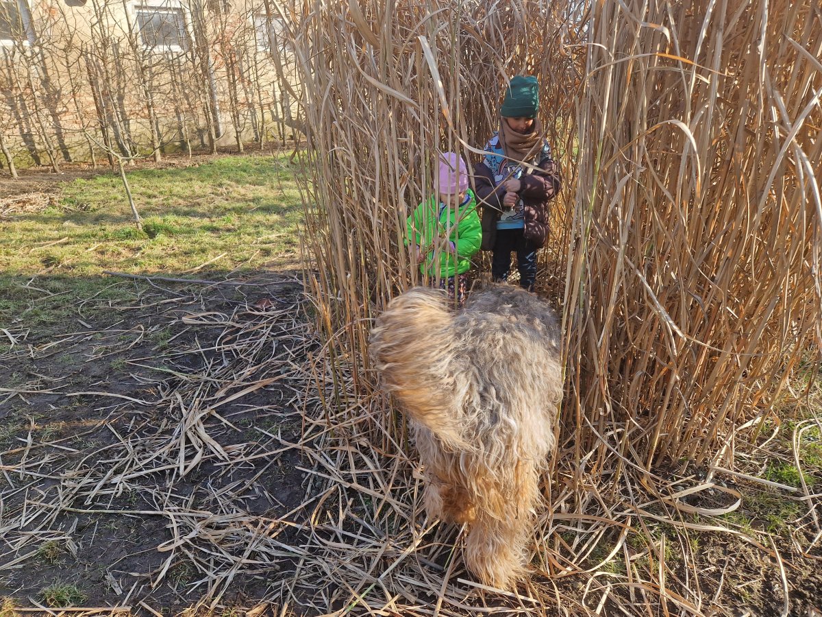Gučka a Dorouš měli laškovnou náladu a pomáhali nosit větve.