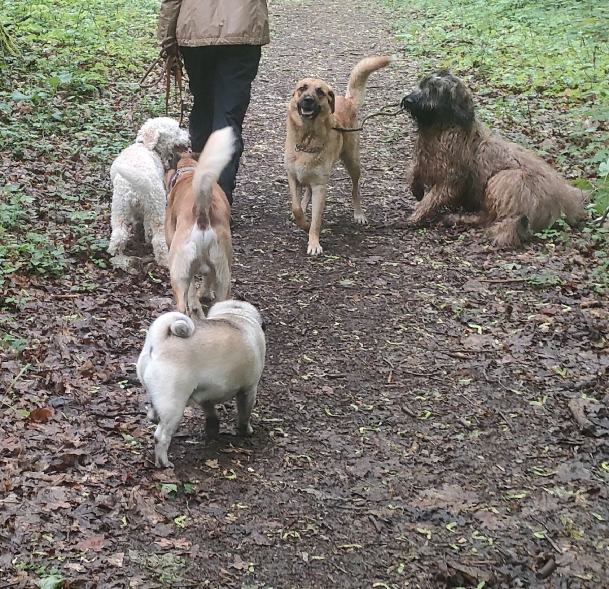Potkali jsme sympatickou paní s mopsem a fenkou italského vodního psa, chtěla ji socializovat s velkými psy, tak jsme šli spolu , fenka se krásně osmělila .