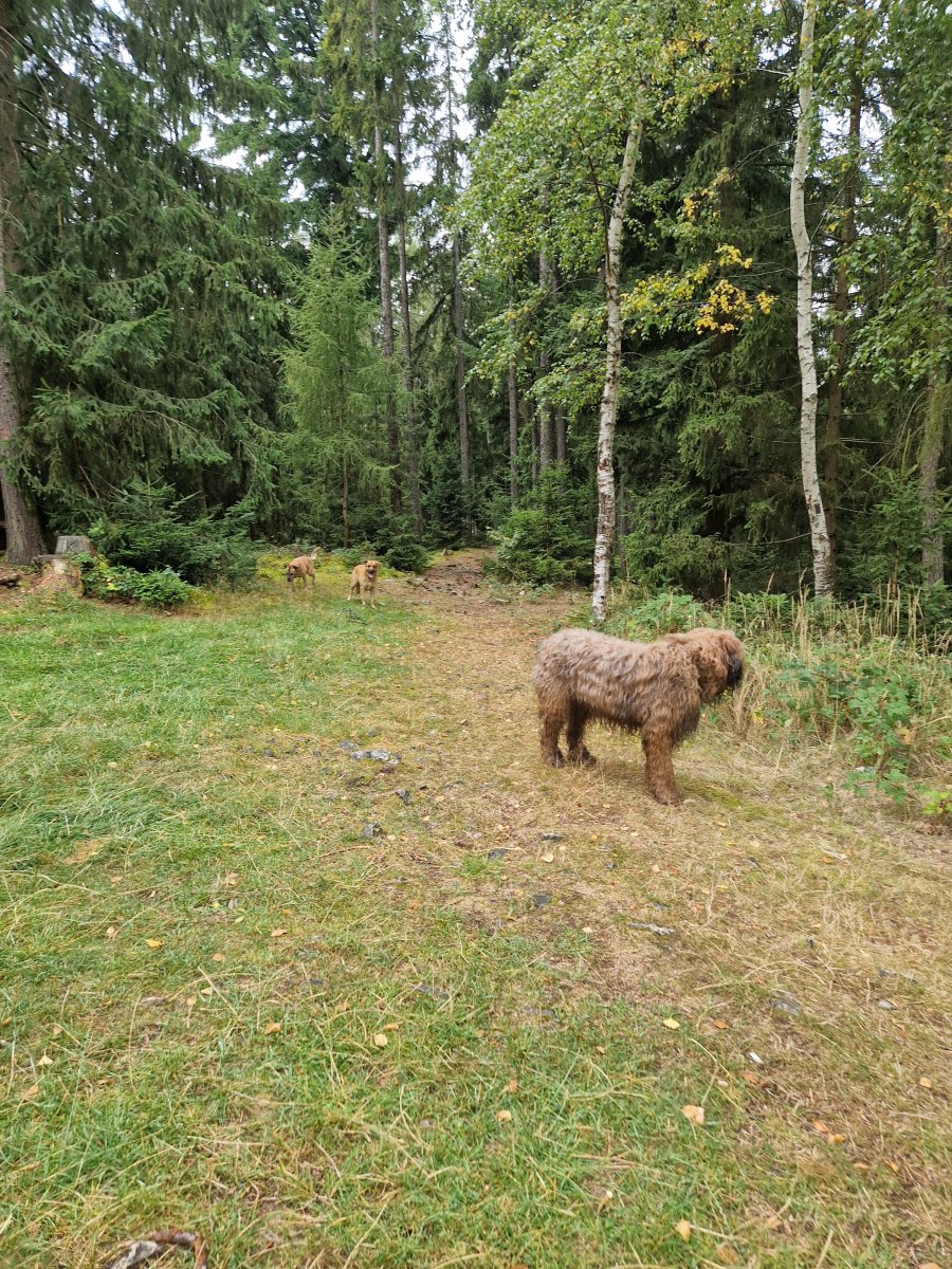 A najednou cítím na koleni těžkou, chlupatou hlavu, byl to Framík , ten blbec přehryzal takový krásný, festovní a drahý vodítko, abysme si byli blíž.😆 Drbala jsem ho už nějakou dobu bezděčně za uchem, tak jsem mu ani nemohla a ni nic říct ☹️.