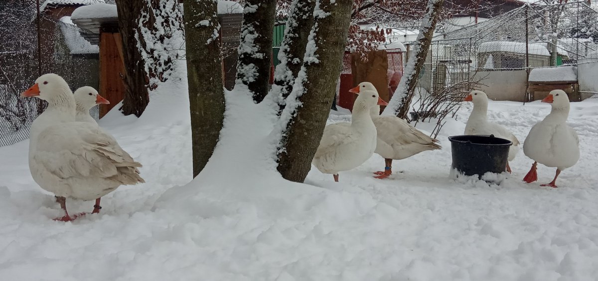 Zdravím. Já osobně chovám čistokrevné české husy. Jakožto u příslušníků plemene menšího tělesného rámce jsou u nich samci dobře obratní a pojímají často i na souši. Úspěšnost těchto kopulací však sám prověřenou nemám. Jsem z chladnějšího a drsnějšího kraje ČR a mrazivé počasí je nyní samozřejmě i nás. Husy chovám ve výběhu “mrazová kotlinka u potoka” a k dispozici mají pouze menší husníky, kam je na noc zavírám před predátory, a kde na jaře vyvádějí housata.