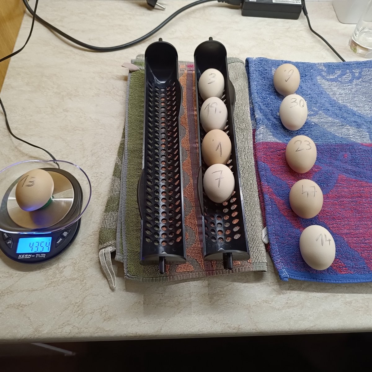 Tak včera po prosvícení po 10dnech v Brinsei z 27mi 2neoplo a jeden kruh smrti, ostatní sou hejbací 🙂 Teď ještě laboruju s vlhkostí, podle vážení sem lehce(v průměru 0,5% v max. případě 2%) nad ideálníma hodnotama(12% úbytek za 18dní), loni sem měl dost neproklubanejch a ty co se klubaly se klubaly stylem naklovat dírku a rozlomit skořápku.. Mohlo by to bejt vysokou vlhkostí, kuřata přerostou a nedokážou se při klování otáčet.. V KingSuro sem s váhou zas mírně pod, tam budu prosvětlovat po 10dnech zejtra.. Tak sem zvědavej, jak to dopadne, jestli bude nějaká ta radost na dvorku 🐥