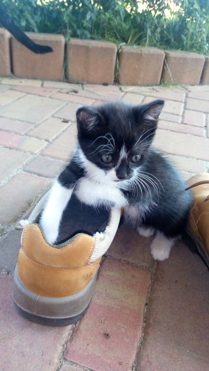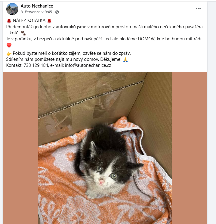 Mám to tady kousek, tak sem jim psal, jestli se jim podařilo kotě někam usadit, nebo jestli je k dispozici.. je to z 8.7. tak už asi nebude.. ale je to božan, packy od mouru a sazí a má zdravej uličnickej kukuč 😍