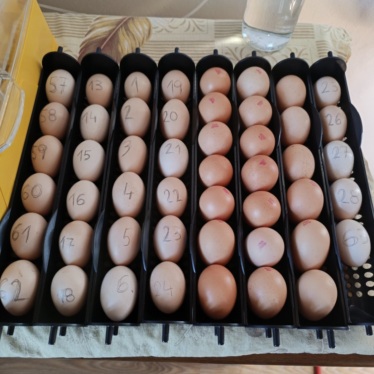 Tak už taky pečeme.. 64 vlastních ze dvou kmenů a 20 pásikavých hybridek z Gyronu zo Slovenska.. Tak snad se aspoň něco vylíhne 🙂
