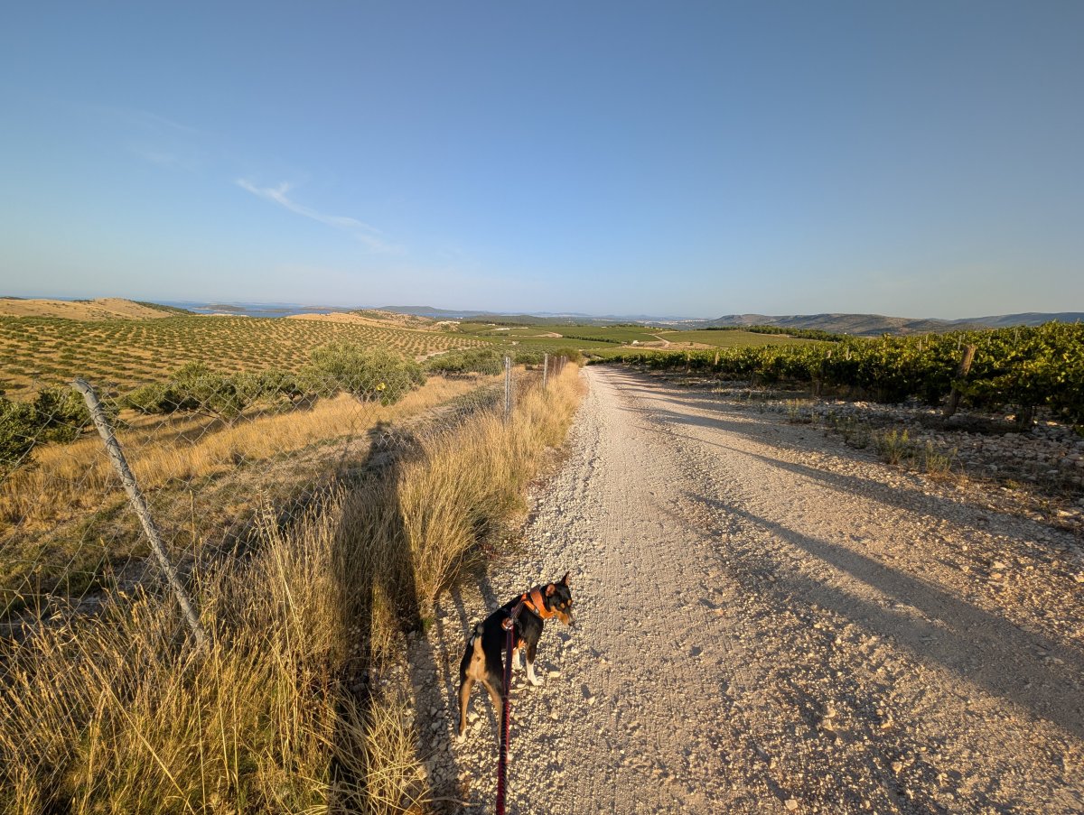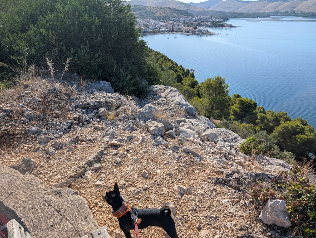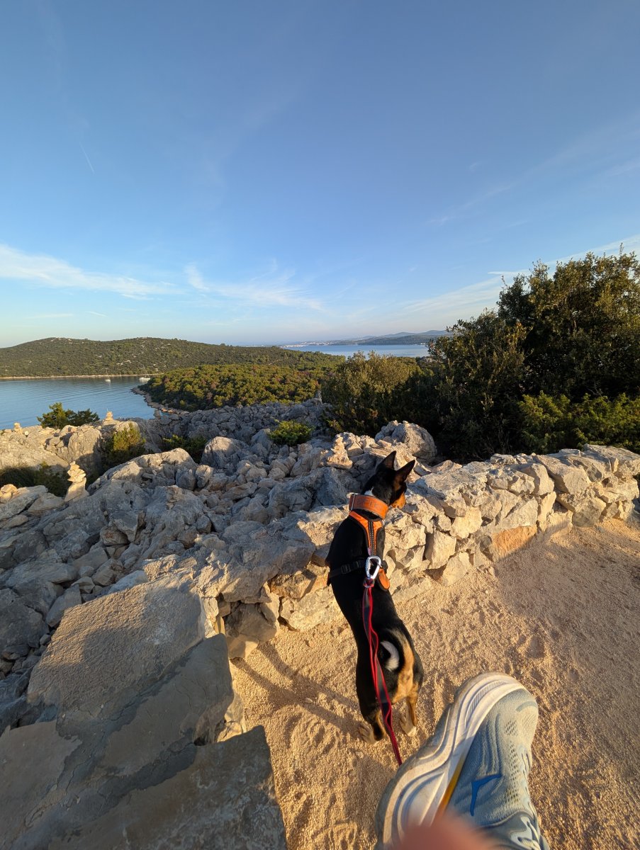 Zdravím z dovči v Chorvatsku. Venčíme (běháme) ráno, dneska vinice, olivový a borovicový háje nad námi. A teď odpoledne opakovačka na terase. Před pár dny po pláži a borovicový lesík na poloostrově kousek odsud... Do vody jsem je zatím moc nedostala. Quie vůbec, ten šel max na 2m k moři a pak utekl před vlnkama. Efík chtěl vlny lovit tak si trošku smočil tlapky, ale dál taky nešel.