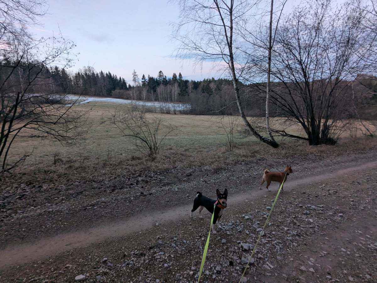 Já byla na návštěvě u mamky pomazlit štěňata. Tak jsem si užila parádní venčení/běhání po lesích a kopcích. První den jsem vytáhla i jednu z mamky fen, druhej den už jen Efíka. Akorát dneska jsem si dala první kopec hned 2x, protože jsem si zapomněla doma mobil... Bylo nádherně.