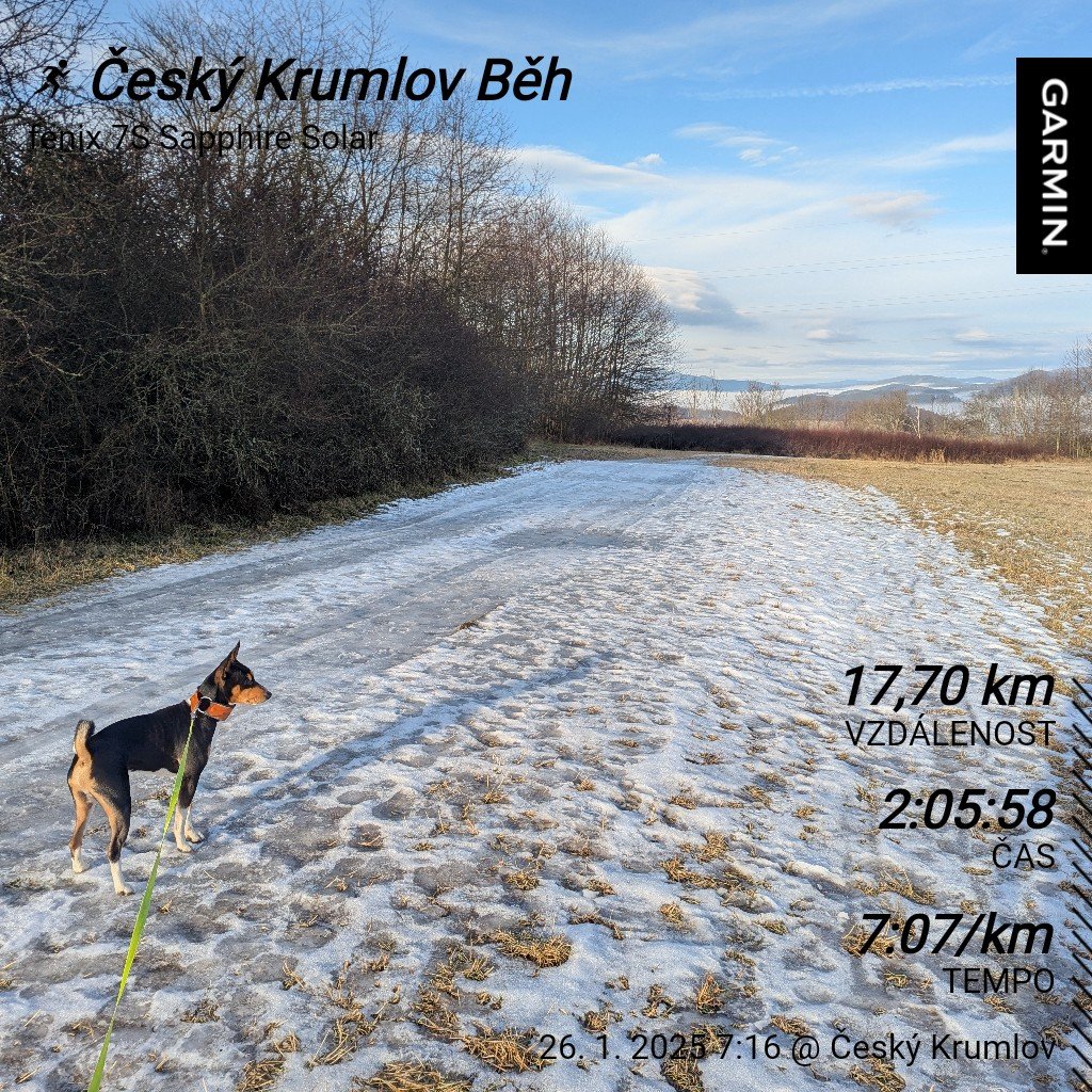 My už máme s Efíkem dneska splněno… V předpovědi vyhrožovali -6°C, nakonec bylo celkem příjemných -3°C. Běželo se moc fajn, jen v tom sněhu to je náročnější, ale moc si to užívám. U nás toho sněhu moc nebývá. Chvíli jsem teda uvažovala, že bych to natáhla na půlmaraton, ale měl přijet nákup a manžel pořád ještě marodí, tak jsem nechtěla, aby musel jít ven přebrat nákup…