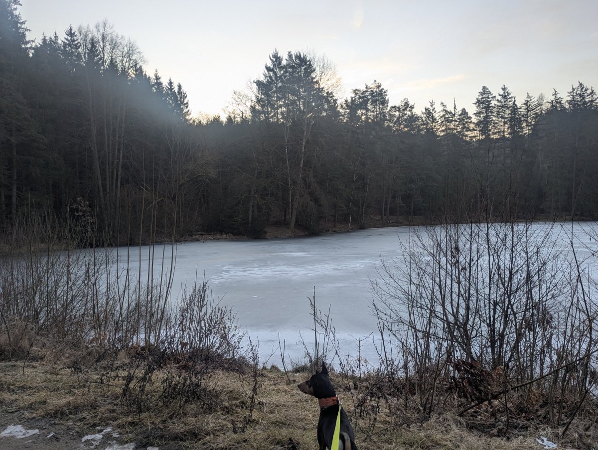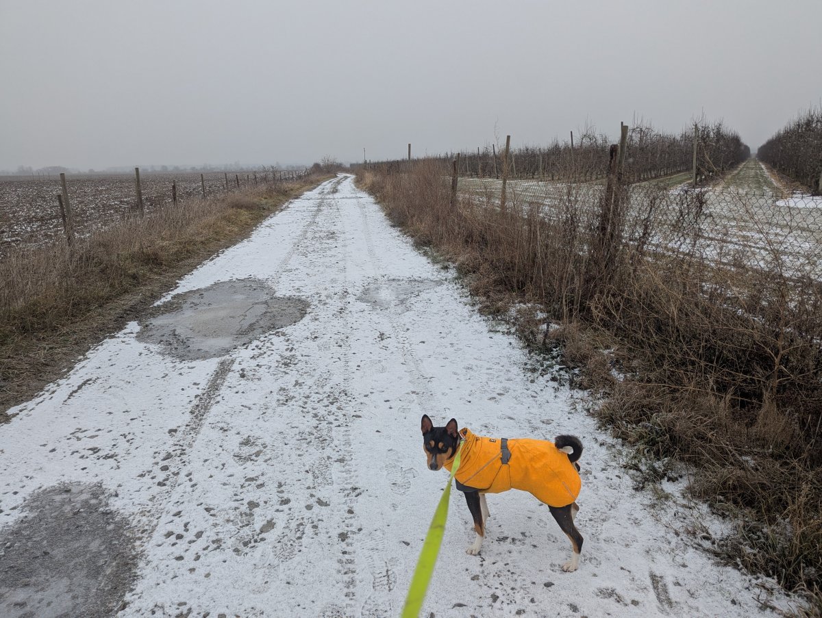 U nás byla fakt kosa už dneska, v 6 ráno bylo -14°C. Dala jsem o něco kratší koloběžku a pak krátkej výběh s Efíkem, už jen v -8°C. Efíkovi hezky namrzaly fousky…