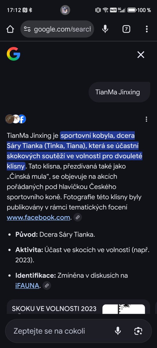 Dneska tam byl jako první AI summary, a jakože, přátelé to není normální! Vždyť ono to našlo i že jí říkám čínská mula