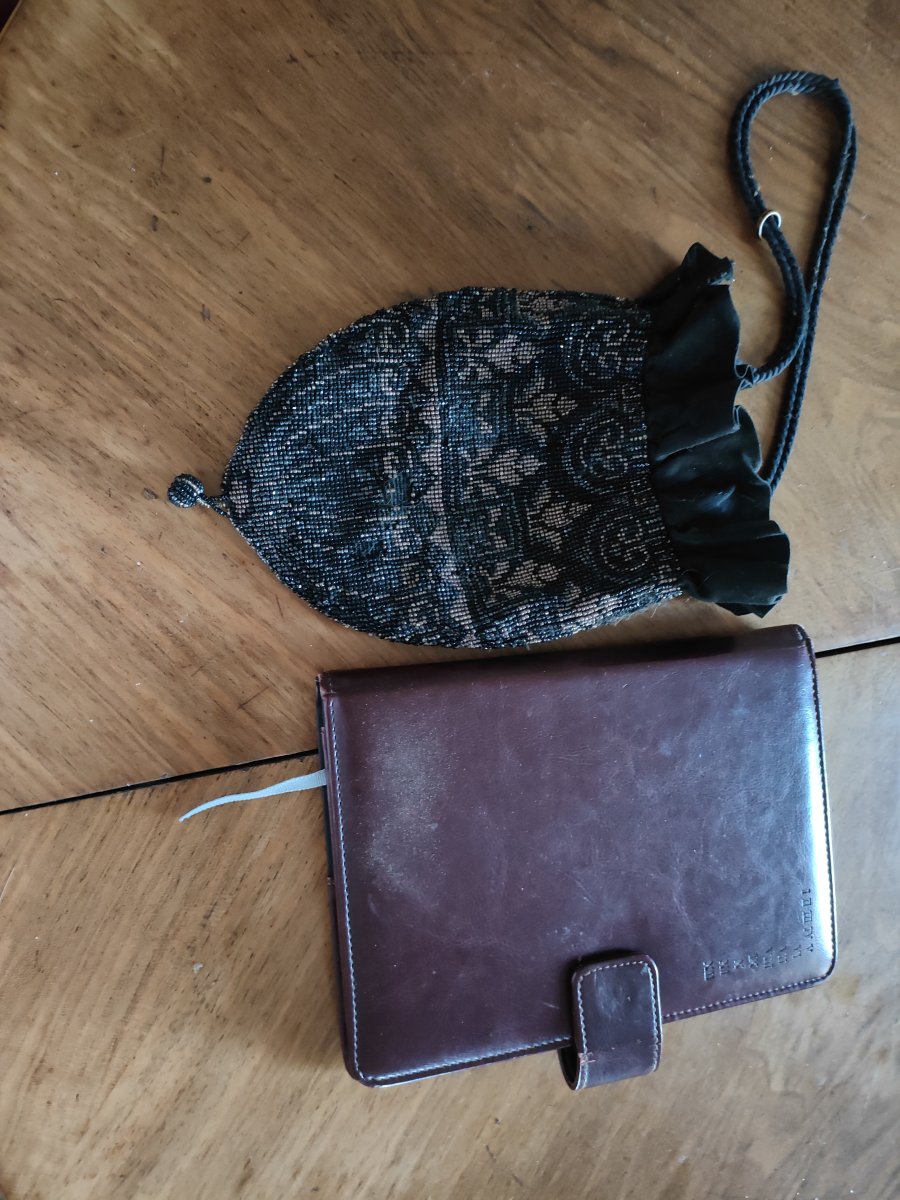Neodolala jsem a vyfotila svojí nejstarší kabelku ( vedle ní formát A5) , je po prababičce, úplně nepatrně ožraná od molů, ale parádu s ní ještě nadělám, zrovna včera jsem ji měla v divadle.🤣