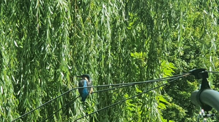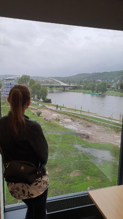 Jsme doma holky👍 Gučinka byla na cestě vedle garáže, když jsme přijížděli, pak se schovala, viděla jsem ji, ale zdrhala a nechtěla přijít. Viktinek přišel na zavolání asi za 5 minut. Gucci zase přišla asi za půl hodiny, protože se hnala bouřka. Hnala, ale dohnala tak max tu Gucci, déšť nestál za nic. My jsme jeli z Prahy v hrozných průtržích, tady od rána napršené 2mm…..klasika. Napršeno je, takže nebrblám, ale proti tomu, co všude spadlo, je to k neuvěření. Teda mamka mi přes den referovala, že jen prská. Před odjezdem z Prahy jsme ještě byli v muže nové kanceláři, tak jsem mu řekla, ať vyfotí výhled. Je to teda ještě staveniště, dokonce i uvnitř ne všechno dodělané, ale výhled super. Ještě, že to vyfotil hned, protože za chvíli právě průtrž a přes mokrá okna nebylo už vidět nic😏