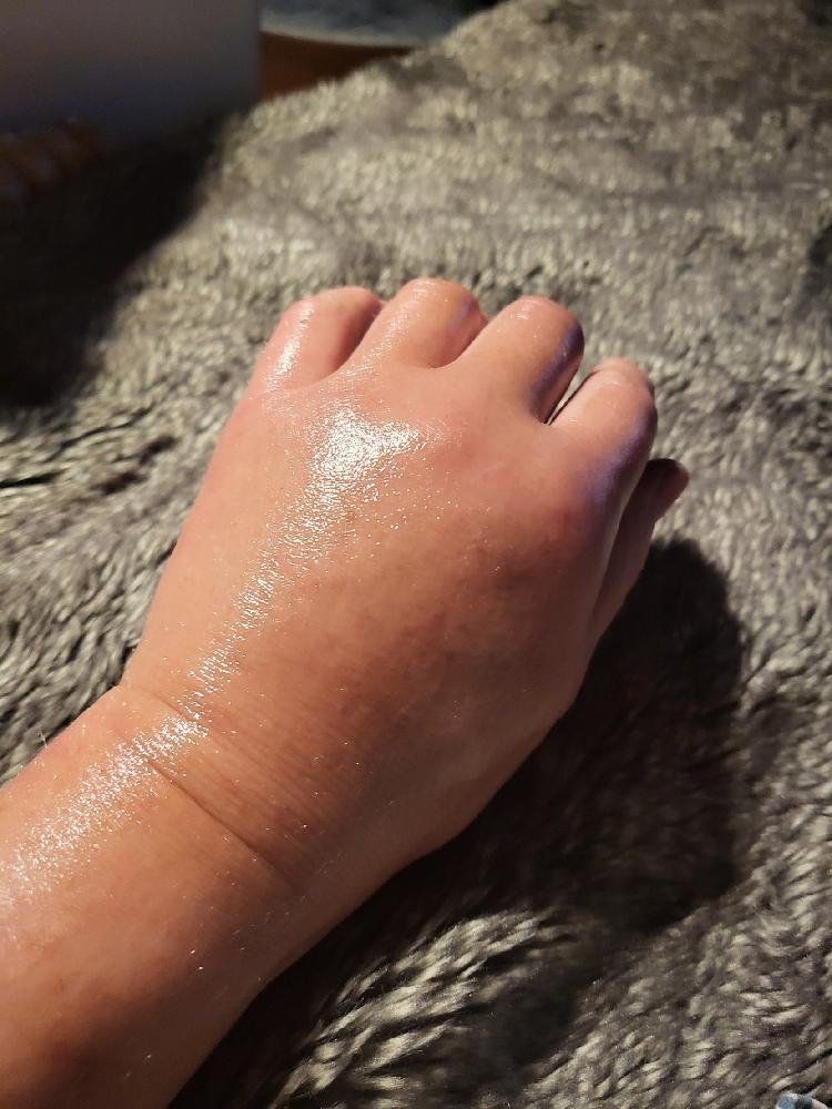 Jak jsem sem včera napsala, volala mi sousedka, jestli nechci čmelín. Prý je v borůvkárně už nepotřebujou, tak jí tatka přivezl 4. Měla jsem pixlu slimejšů pro její slepičky, vzala jsem kolečko a jela udělat výměnný obchod😉Normálně je to kartonová krabice se třemi dvířky. Otevřu jedny, začnou vylítávat čmeldi, otevírám druhé a pích! Dostala jsem žihadlo do prstu. Zabolelo to teda fest, takový prcek malej nasratej to byl, přes rukavici! Smetla jsem ho z ruky, dostal vylágoš jako ten Berťa😉Pomazala jsem prst jitrocelem a za pět minut už to nebolelo. Natáhla jsem rukavici a šla roznášet posekanou trávu do brambor. Za hodinu přijde Tom, ukazuju mu čmelín, sundám rukavici, že mu ukážu píchanec a já ruku jak papuč! Vůbec jsem to nevěděla, že mi to tak nateklo. Jenže do půlnoci už jsem ani prstama nepohla, takže jsem si vzala prášek na alergii. Ráno ruka sice na pohled stejně oteklá, ale prsty už fungovaly. Teď pravá strana od palce už splaskává, u malíčku ještě je nafouklá dost. Nedá se ani říct, že to nějak bolí, to jen na omak, jinak to spíš tak jako táhne…Foto ze včera večera, mázla jsem to kalciovkou, ale to nepomohlo, pořád se to zhoršovalo.