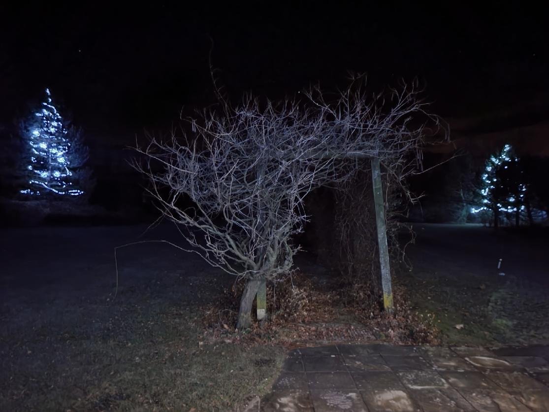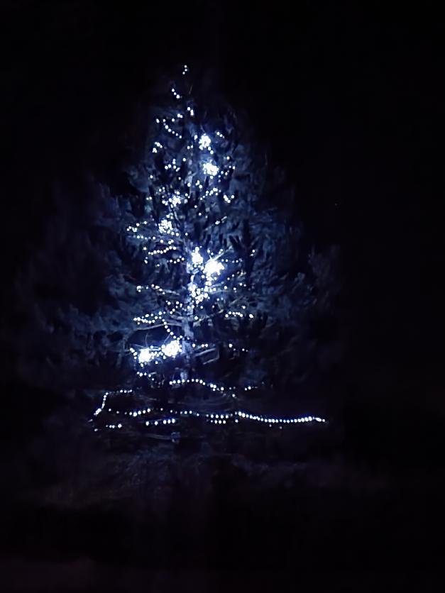 A vracíme se domů a konečně mě napadlo vyfotit to nasvícení. Něco je přes okýnka v autě, na barák celkově se mi tak drkotal člověk zimou, že je to rozmazané😛 Líp to neumím😏 První strom je příjezd od vesnice, je vidět na 400m, už když se vjede do ulice. Tady je focený od sousedů, aby tam nebyly jejich baráky a nepřisvojila jsem si i jejich světýlka😜 Druhý s těma prskavkama, je spíš zase z druhé strany. Oba jsou focené pak od baráku, ale ten od vesnice, překrývá dub, který z tohoto pohledu stojí před ním. A na tom víc nazdobeném ty ,,prskavky" zase moc nevyniknout, jen taková šmouha😏 Ale je tam líp vidět ta velikost stromů.