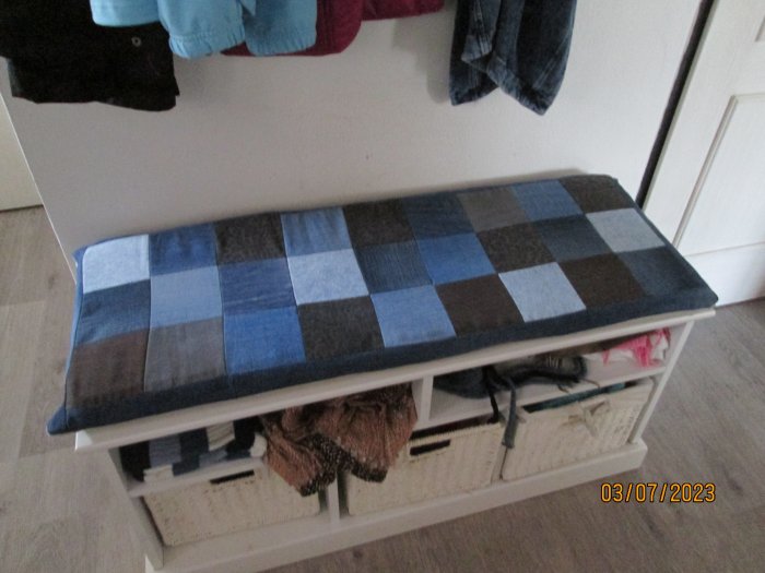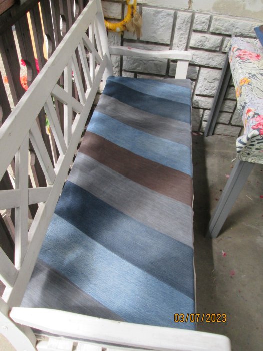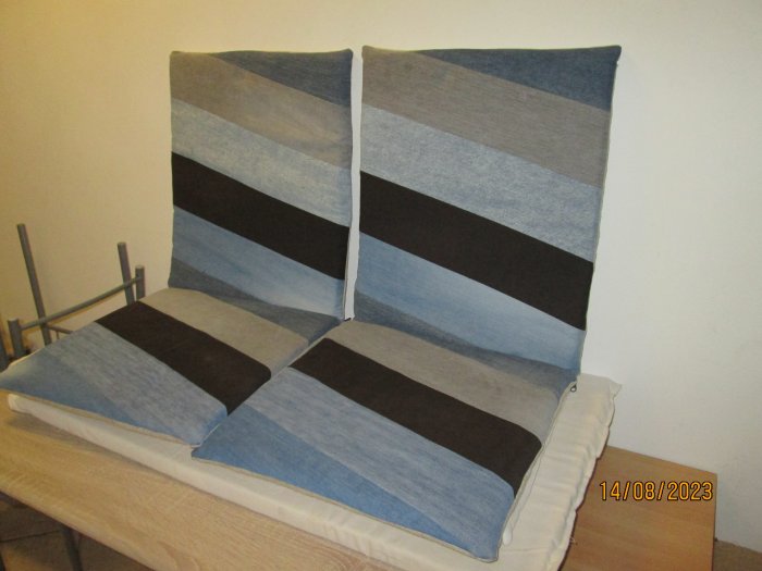 Niki-ano podsedák a opěrka na dřevěné jako dvojkřeslo v hale..Má na něm pletený přehoz po babičce😊už jsem jí tam ušila na druhou lavku-u koupelny,v létě,tak aby měla podobné..A k taburetce v obýváku jí potáhnu to křeslo..Líbí se jí i gauč takhle vylepšený,ale do toho asi nepůjdu..Maximálně nějaký “přehozek” na madlo-s kapsami na ovladače a tak..