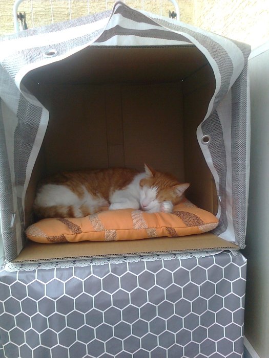 Je to na tobě..Je tam i zvyklá..je očkovaná a kastrovaná..takže někdo to musel zařídit..Tys jí viděla zrovna takhle…Najdu fotku krabice s Maxem..v té býval venku na balkoně..Dala jsem na ni igelit proti děšti..taky řešení…dospod dát kousek polystyrenu-to by tam mohli mít…trošku víc zakrytá…