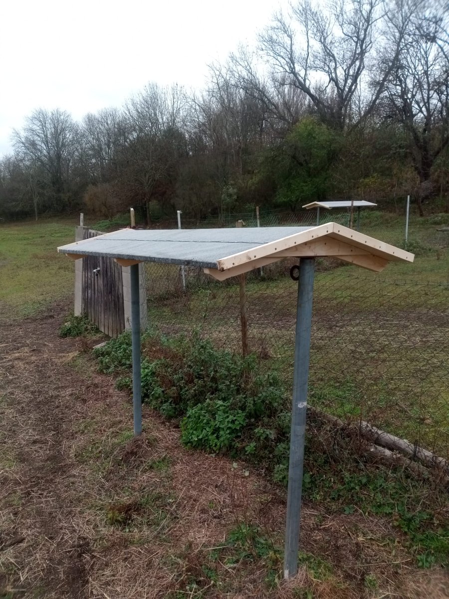 No a dneska mi známý dodělal stříšky,které jsem chtěla..zavěšuju tam síťky se senem pro holky,ale samozřejmě když to zmoklo,tak to nechtěli jíst..už jsem to chtěla na minulou zimu,ale to se nestihlo,tak teď už je hotovo a zítra jim tam síťky rozvěsím..no a čekal mě dneska dobrý šok,kdy jsem málem propíchla kocoura🙄Nastýlala jsem slepičkám čistou slámu do kurníku a tak jsem vzala vidle,že si tu slámu naházím do kolečka a odvezu..odkryla jsem plachtu z balíku,ale jen částečně,protože jsem potřebovala jen dvoje nebo troje větší vidle..no a píchnu do balíku a najednou slabé zamňoukání..vidle mi upadli z ruky a já už myslela,že tam spal Bert a já ho zapíchla🙄Naštěstí jsem nikoho nezapíchla a bylo to fakt těsně vedle..a prostě se mi tam usídlil nějaký toulavý kocourek..takže jsem mu tam to hnízdečko nechala a dala mu tam aspoň granulky..vypadal spokojeně…