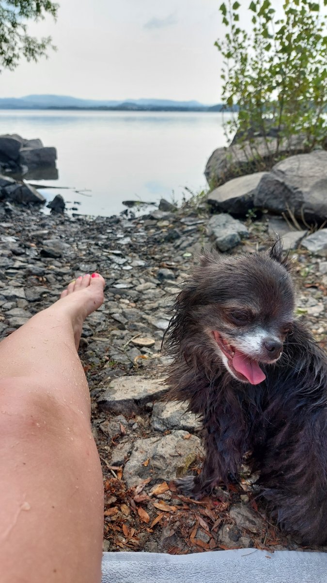 Pak jsem doma něco pojedla,ochladila kočičáky(v bytě je 25°C) a vzala čivavku a vyrazili jsme se koupat..co taky jiného dneska..užili jsme si to obě..pak jsme jeli na zmrzku a k mamce na večeři..