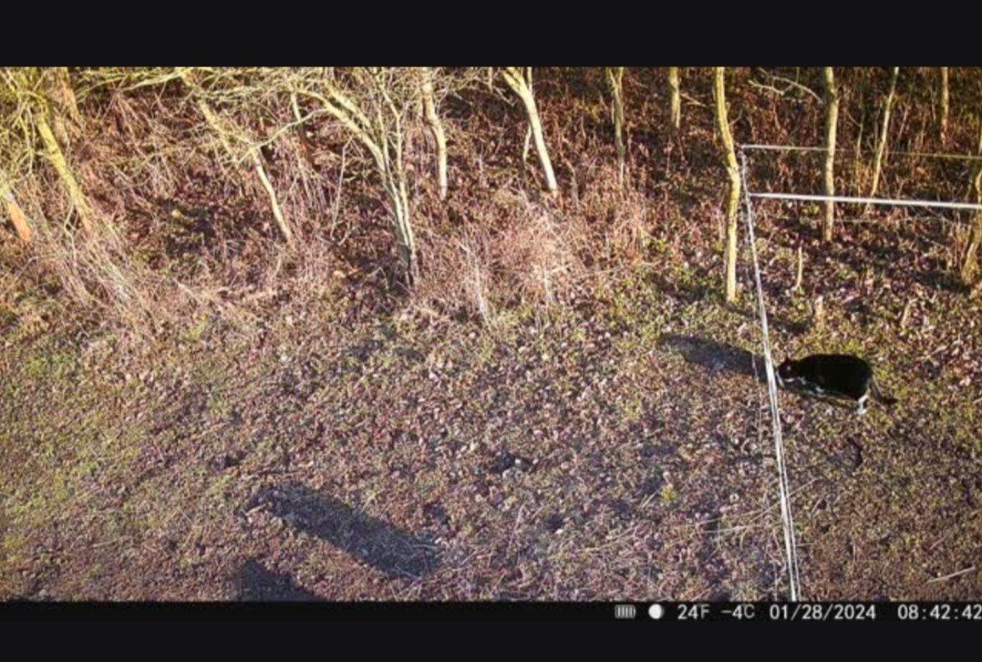 Přišla jsem na zahradu a Bertík nikde..tak jsem si říkala,že to je dobrý znamení,že se mu ulevilo a vydal se na lov někam..jenže asi za 2 hodinky jsem slyšela,jak nahoře na poli střílí ty pomatený myslivci…viděla jsem je tam jezdit autem..no to už jsem o Berta začala mít strach..kde je sakra?A vím,že ty pitomci by ho klidnr střelili,kdyby tam někde běžel…volala jsem,hledala jsem..ale nikde ani vidu,ani slechu…no a když jsem šla večer zavírat,zase tam nebyl….a z toho už fakt mám blbý pocit…jako granule byli z obou mističek ujedený,i tyčinka byla snědená…ale..no prostě chtěla jsem ho vidět,že je v pořádku..a trošku mě mate i to,že vždycky chodil z pozemku stejnou cestou,kde ho zachytila fotopast a teď nic..od tý doby,co se to stalo..jsem z toho taková nesvá…