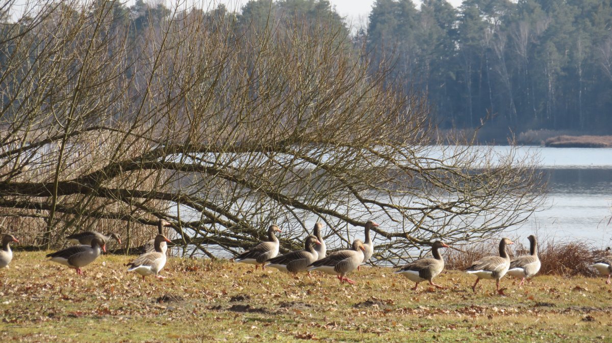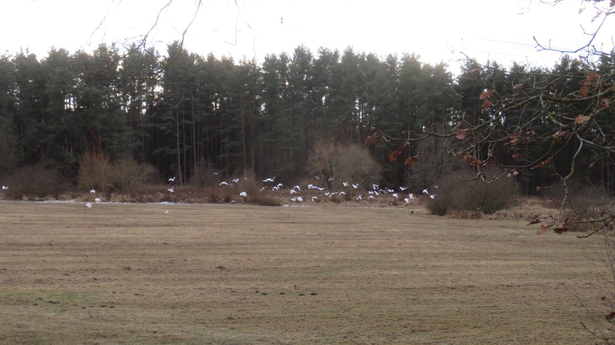 Tak přidám na co se koukám u nás na Třeboňsku.Husy jsou všude,ale páry už asi sedí.Malá hejna kejhalek se pasou na pastvinách,nebo posedávají na hrázích rybníků.Jeřábi se objevují nepravidelně všude.Hohol severní už je na svém místě a strakapoud už staví hnízdo v dutém dubu.Jarní výlov Opatovického už začal a amuři chtějí utéci z loviště.