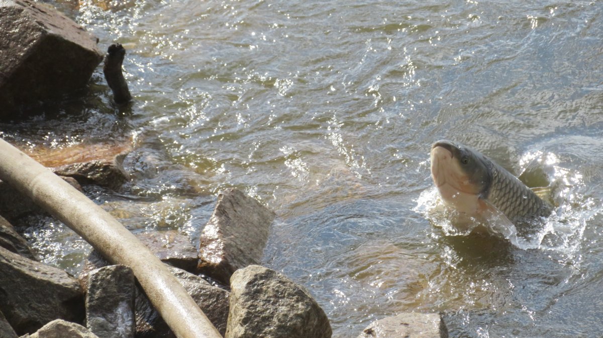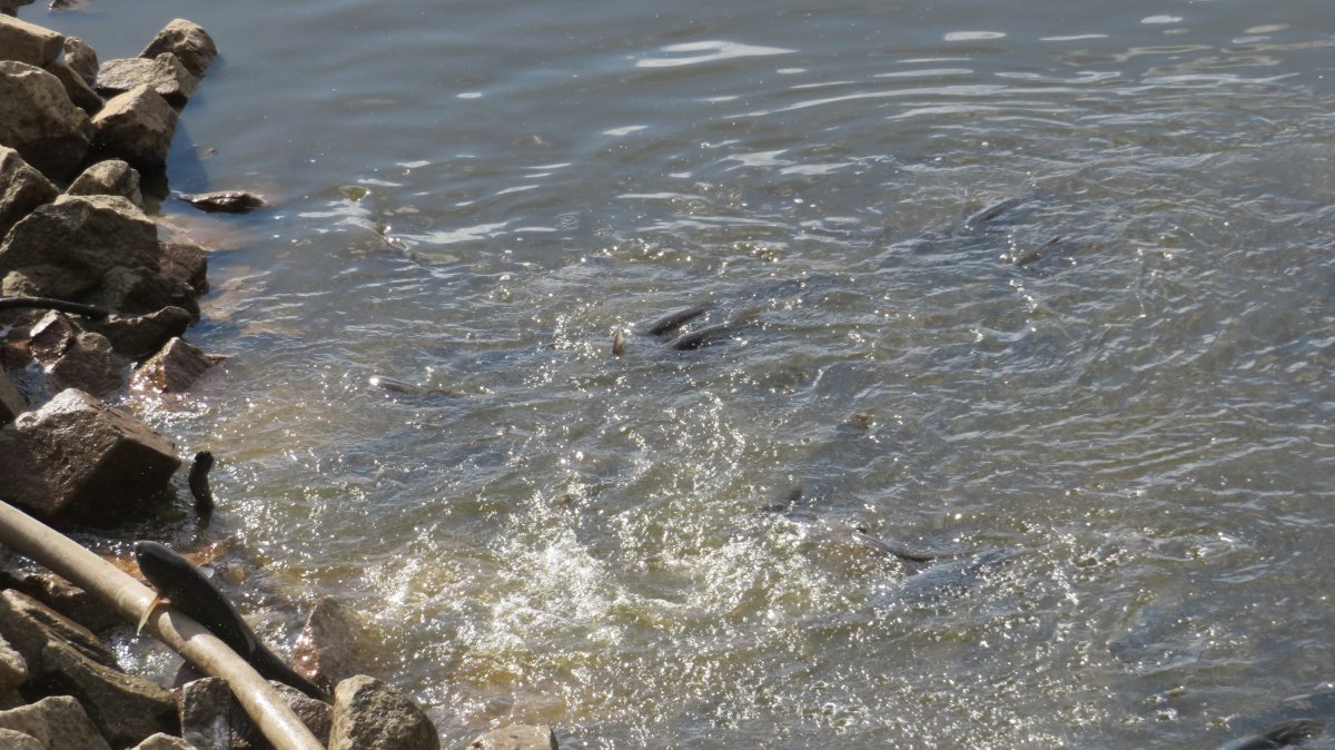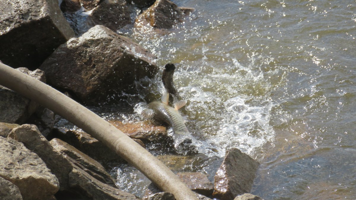 Ta fotka s amurem nebyla hned.Zmařil jsem nejméně 30 fotek,než se to povedlo.Amuři skákali proti střiku,ale nemohli překonat tu hromadu kamení.Bylo to moc hezké je pozorovat.Amur je bojovník.