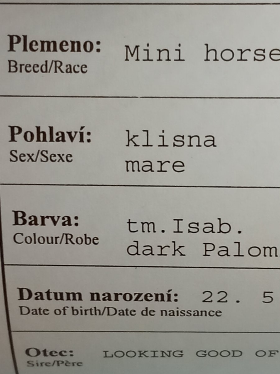 Pro Verun-cvakla jsem výřez z průkazu, jen ve fofru, opravdu takto zapsaná je a gen silver daple má 👍