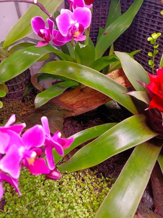 Vím, s plísní bývá problém. Já většinou používám staré zvětralé větve nasbírané v podrostu borového (sem tam dub) lesa. O nějaké nenarušené struktuře se v žádném případě nedá mluvit. Peču a vařím přestože vím že jsou spory plísní všudypřítomné a případné následné kontaminaci se prakticky nelze vyhnout. Je dost dobře možné že je celá taková akce spíš kontraproduktivní páč daleko důsledněji zlikviduji jiné organismy které případně mohou držet plísně na uzdě. Zřídka se podaří získat torza větví z oblastí těžby rašeliny o něco lépe zbytky pařízků z na zimu odpouštěných starých přehradních nádrží. V prvém případě neblbnu, ve druhém vařím a peču. Možnosti budou jistě i jiné vhodné ale mě vyhovuje uvedené, protože těch pár větviček nestojí za velké bádání. Jako hlavní však považuji dobré větrání terárek a hned poté používat pokud možno dřevo staré, zvětralé, prosté živin nebo jen s minimálním zbytkem. Zkusil jsem nafotit jak se chová kus větve v terku založeném v lednu t.r., takže relativně čerstvé. Nevím zda bude něco vidět páč se vše hned orosí, denní vlhkost okolo 80-85% noční 95+. Větve položené (místy zanořené) na stále mokrém substrátu a ještě po nich sem tam šplhají kytky.